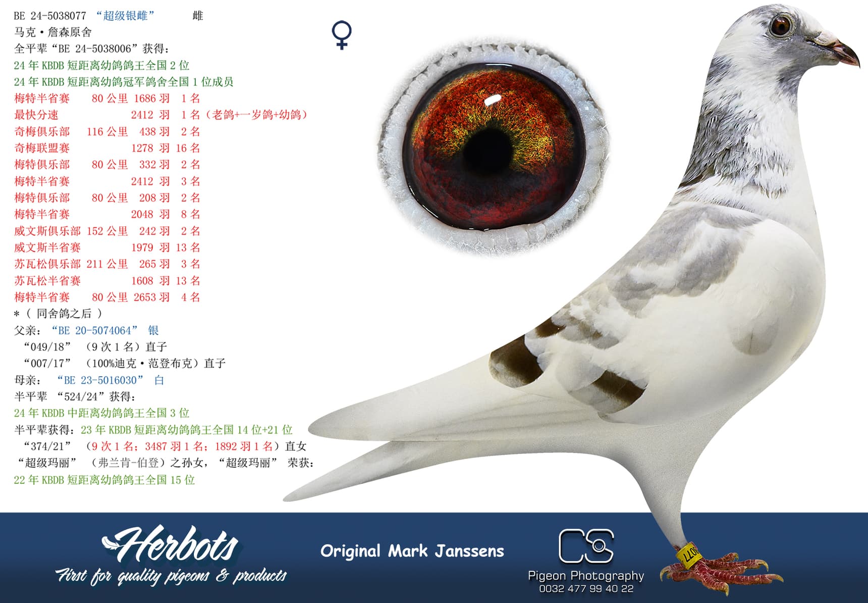 “374/21” (9次1名;3487羽1名;1892羽1名)直女