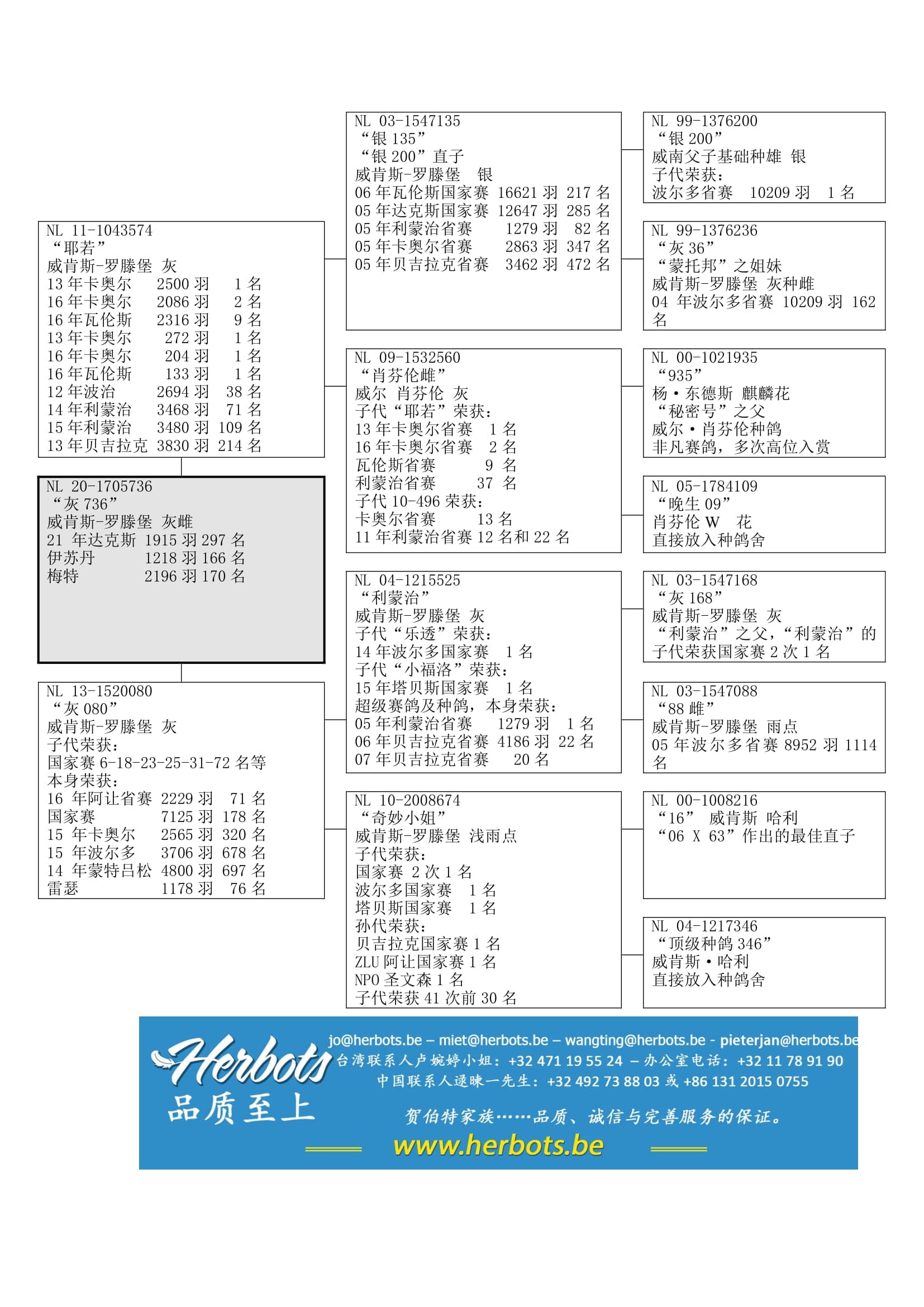 荣获 :利蒙治省赛 1,279羽1名;其子代代表:“乐透” (14年波尔多国家赛1名) 和“小福洛” (15年塔贝斯国家赛1名)