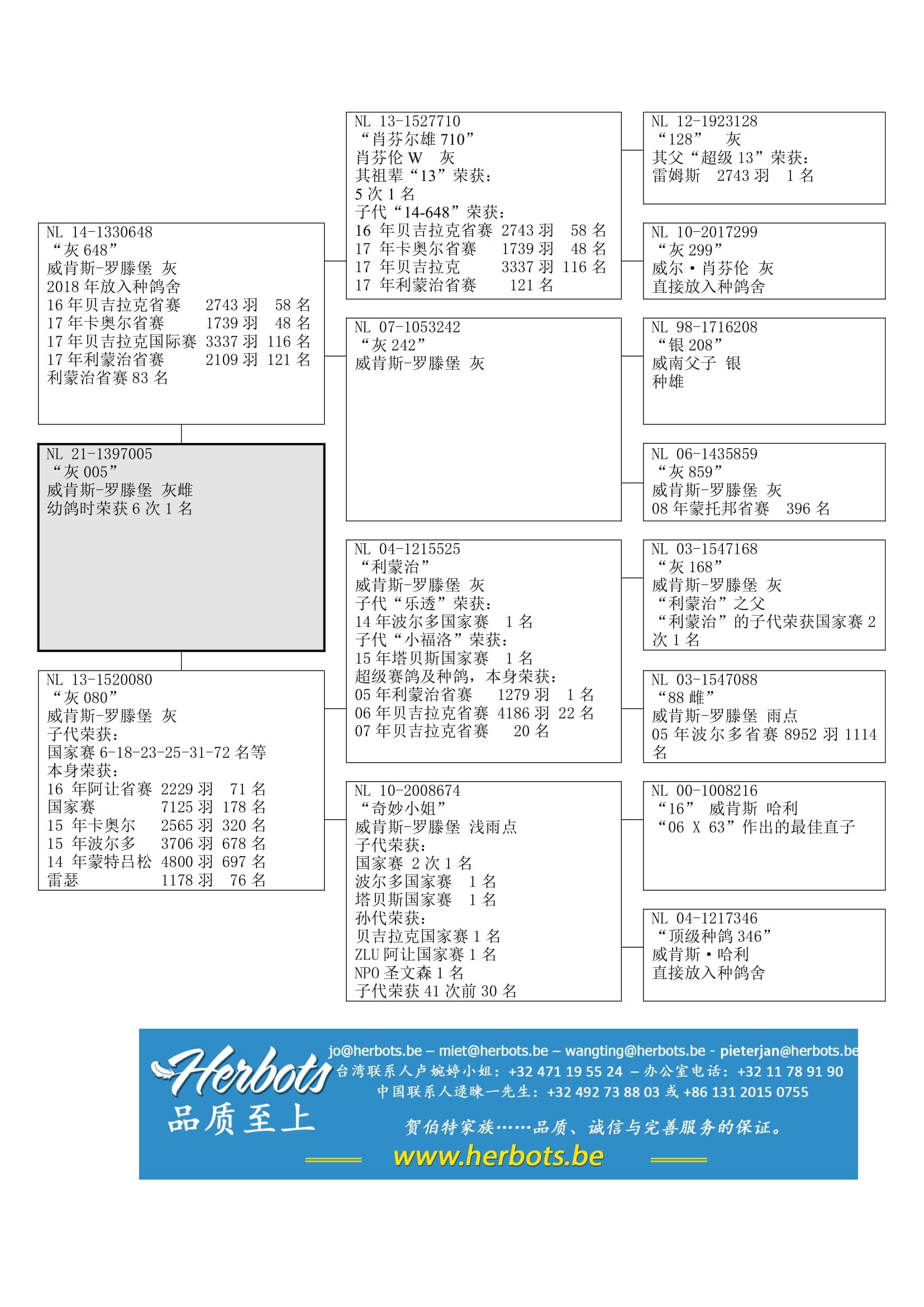 荣获: 卡奥尔省赛 1,739羽48名 - 波治省赛2,743羽58名 – 贝吉拉克国际赛 3,337羽116名 – 利蒙治省赛 2,109羽121名 – 等等