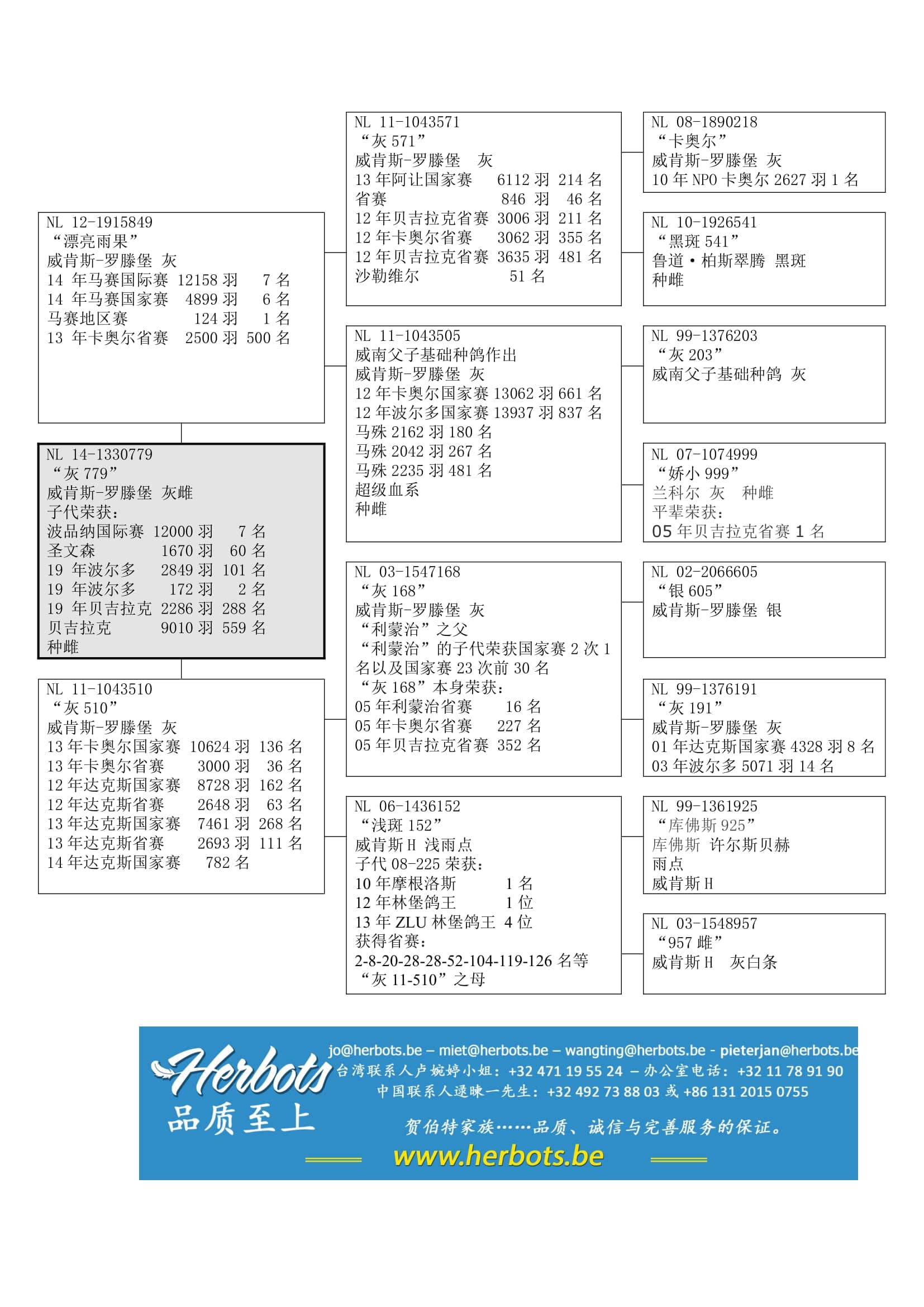 荣获: 14年马赛国家赛 4,899羽6名 - 14年马赛国际赛 12,158羽7名
