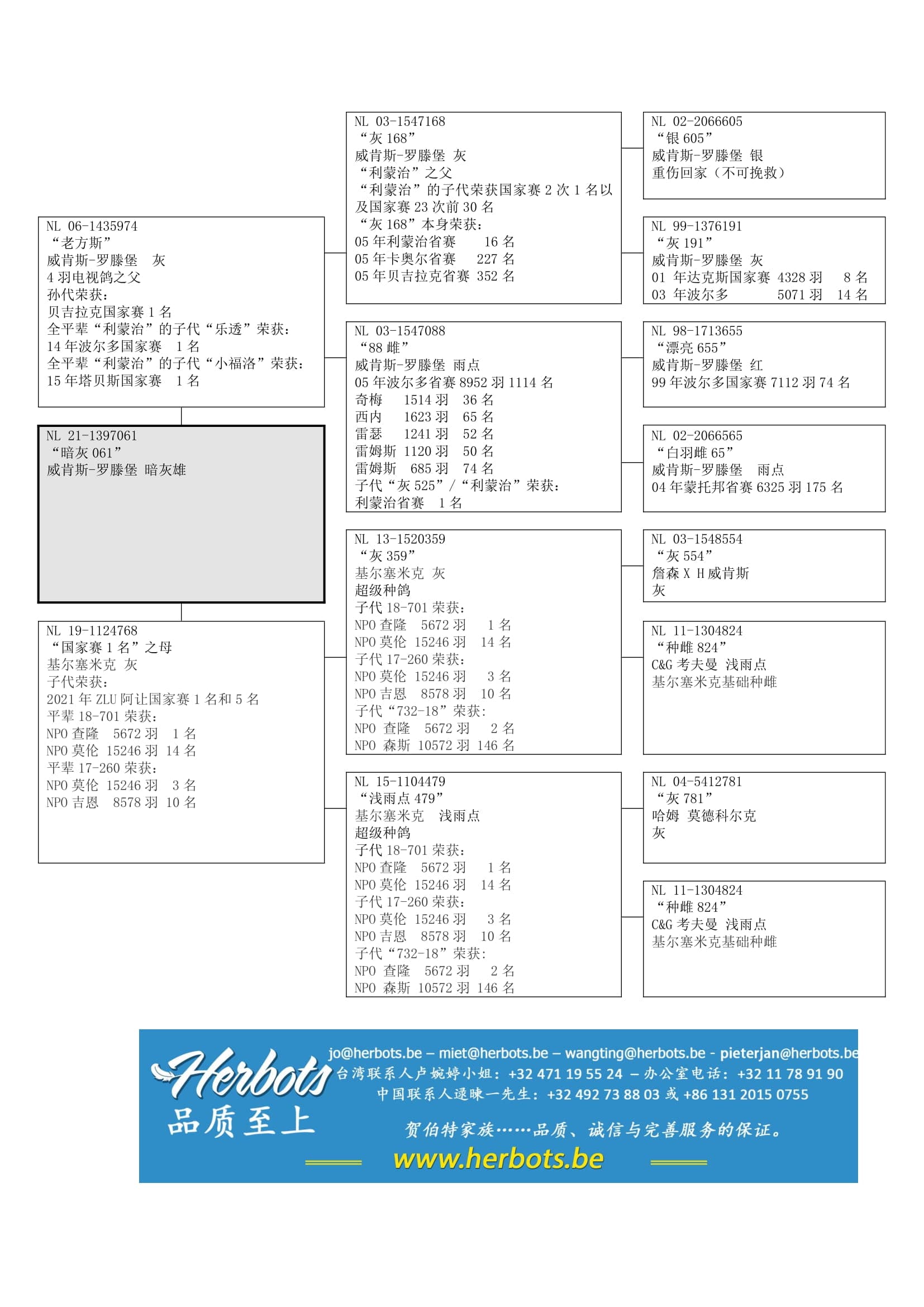 “老板 703”:  布雷索勒 1,648羽13名 – 亚精顿国家赛9,512羽35名 - NPO 利蒙治 1,654羽41名