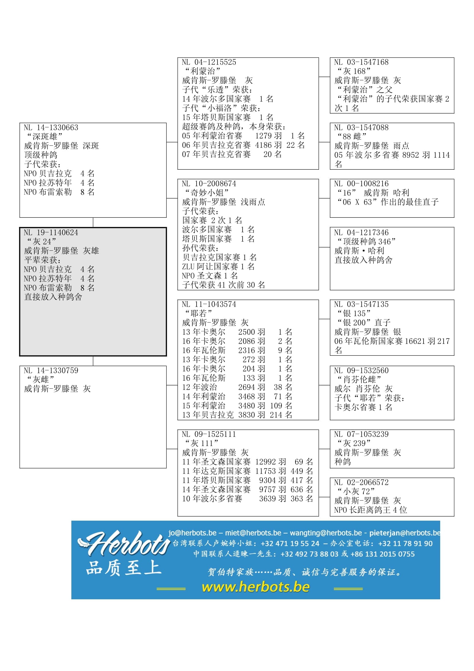 荣获: 圣文森国家赛 12,992羽69名 – 达克斯国家赛11,753羽449名 – 塔贝斯国家赛 9,304羽417名 – 等等