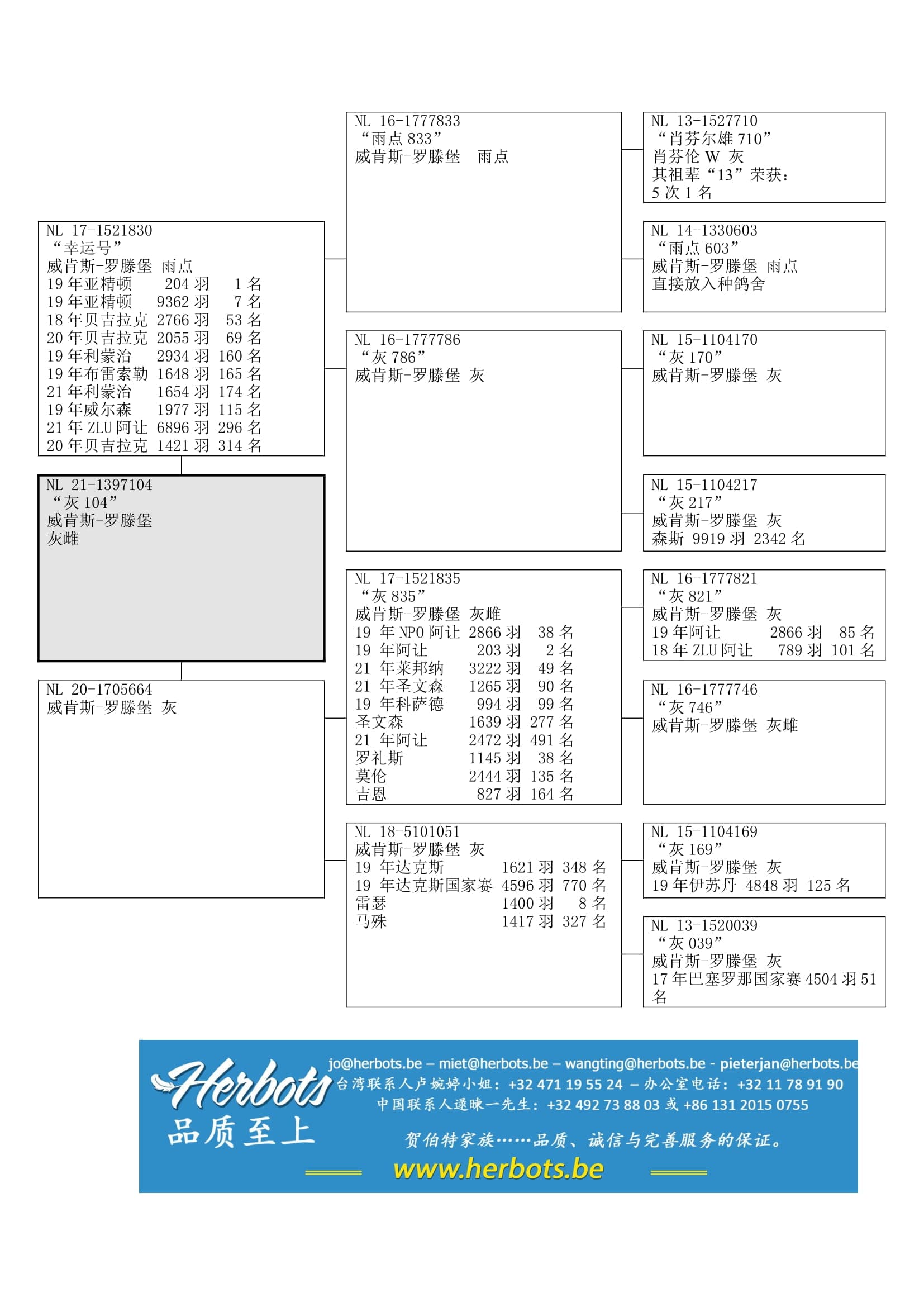 NL17-1521835” (顶级鸽“耶若”直孙)  x “NL18-5101051” (17年巴塞罗那国家赛4,504羽51名直女) 直女