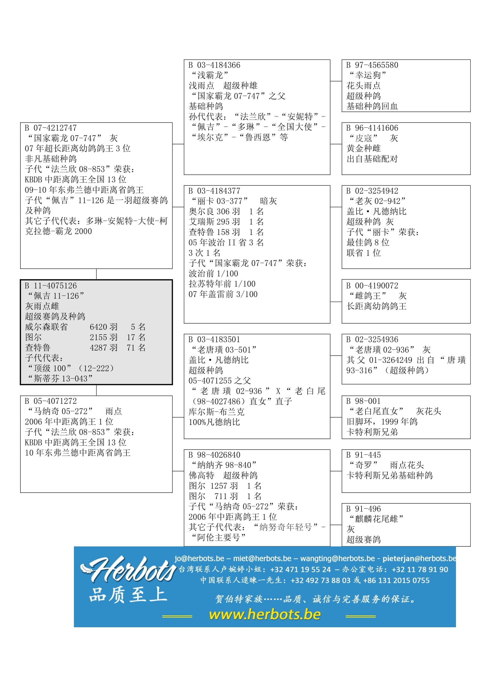 “斯蒂芬 043”: 14年KBDB中长距离鸽王全国14位 - 子代荣获 19年威尔森国家赛一岁鸽组11,606羽1名-范希使翔