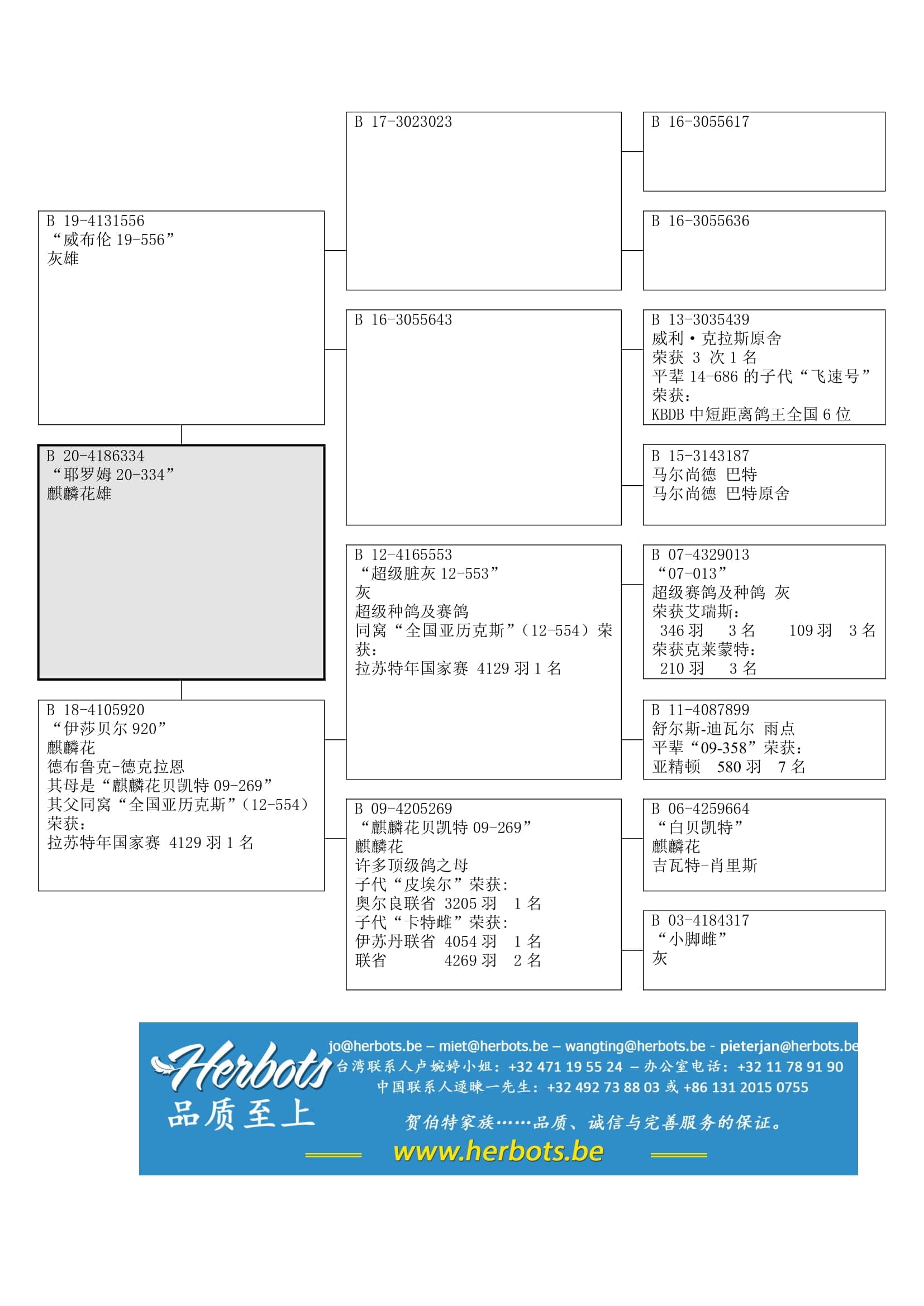 “B12-4165553” (荣获 19 次前1/10以及8 次前10名 -同窝“全国亚历克斯”荣获 拉苏特年国家赛1名) x “B09-4205269” (子代荣获:奥尔良联省 3,205羽1名以及伊苏丹联省 4,054羽1名) 作出