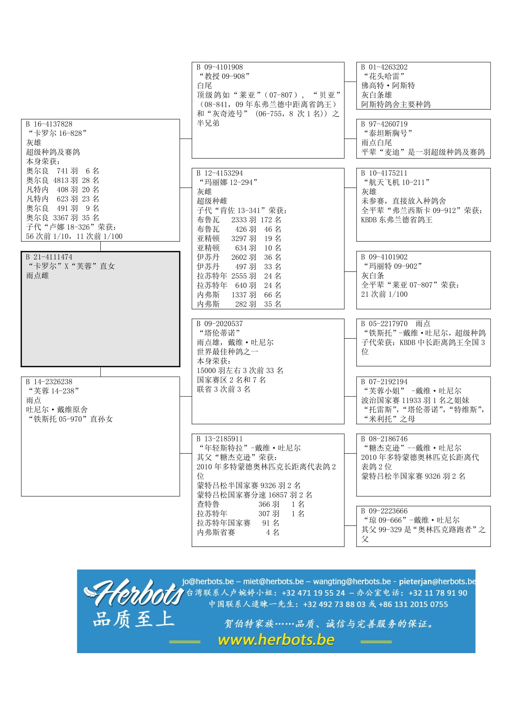 顶级鸽如“莱亚”, “贝亚”以及“灰奇迹号” (8 次1名)等之半兄弟