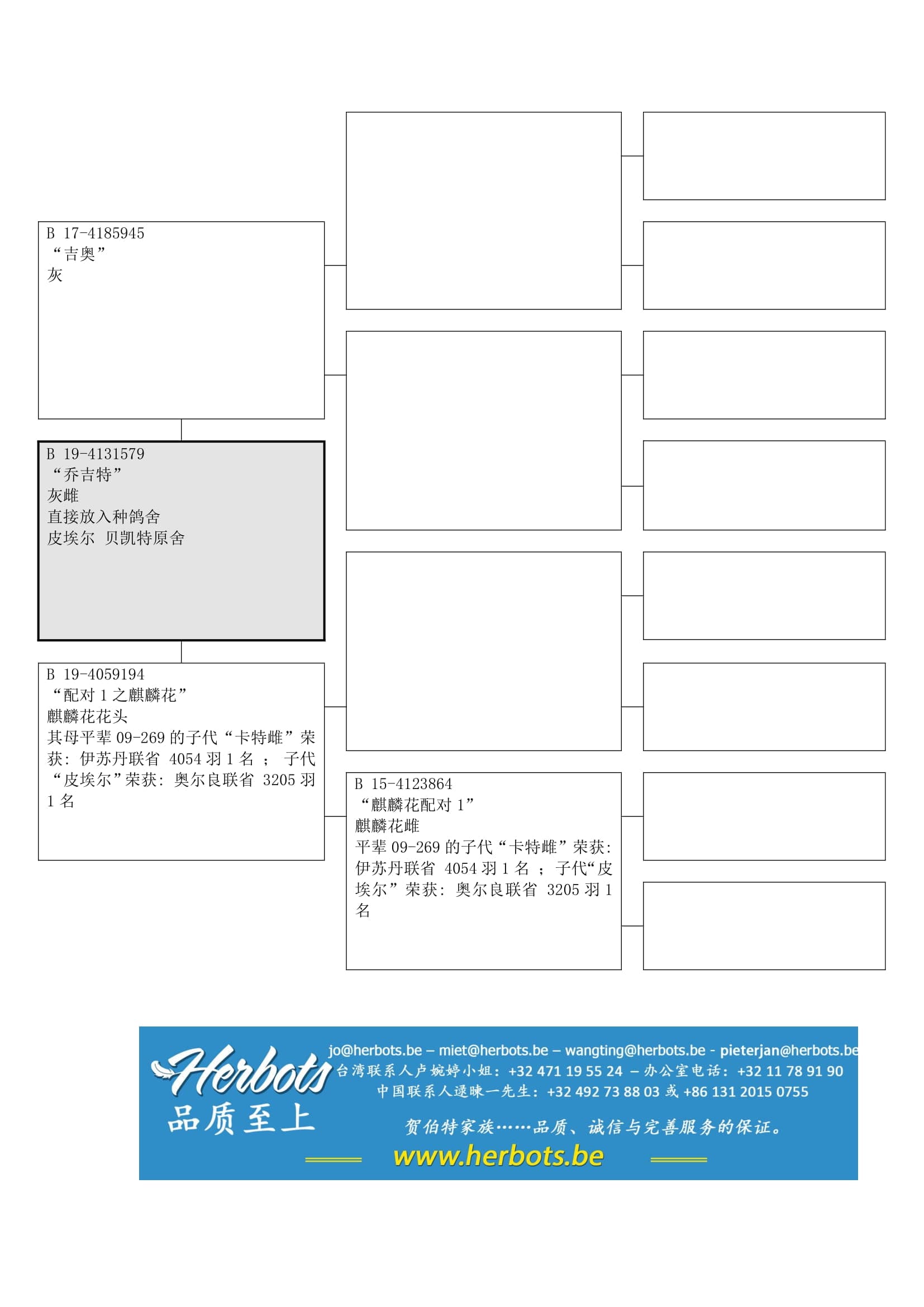 母亲: “配对1之麒麟花” B19-4059194“麒麟花配对 1”直女 . “麒麟花配对 1”是“卡特雌”之母之全姐妹,“卡特雌”荣获:伊苏丹联省 4,054羽1名;子代“皮埃尔”荣获:奥尔良联省 3,205羽1名