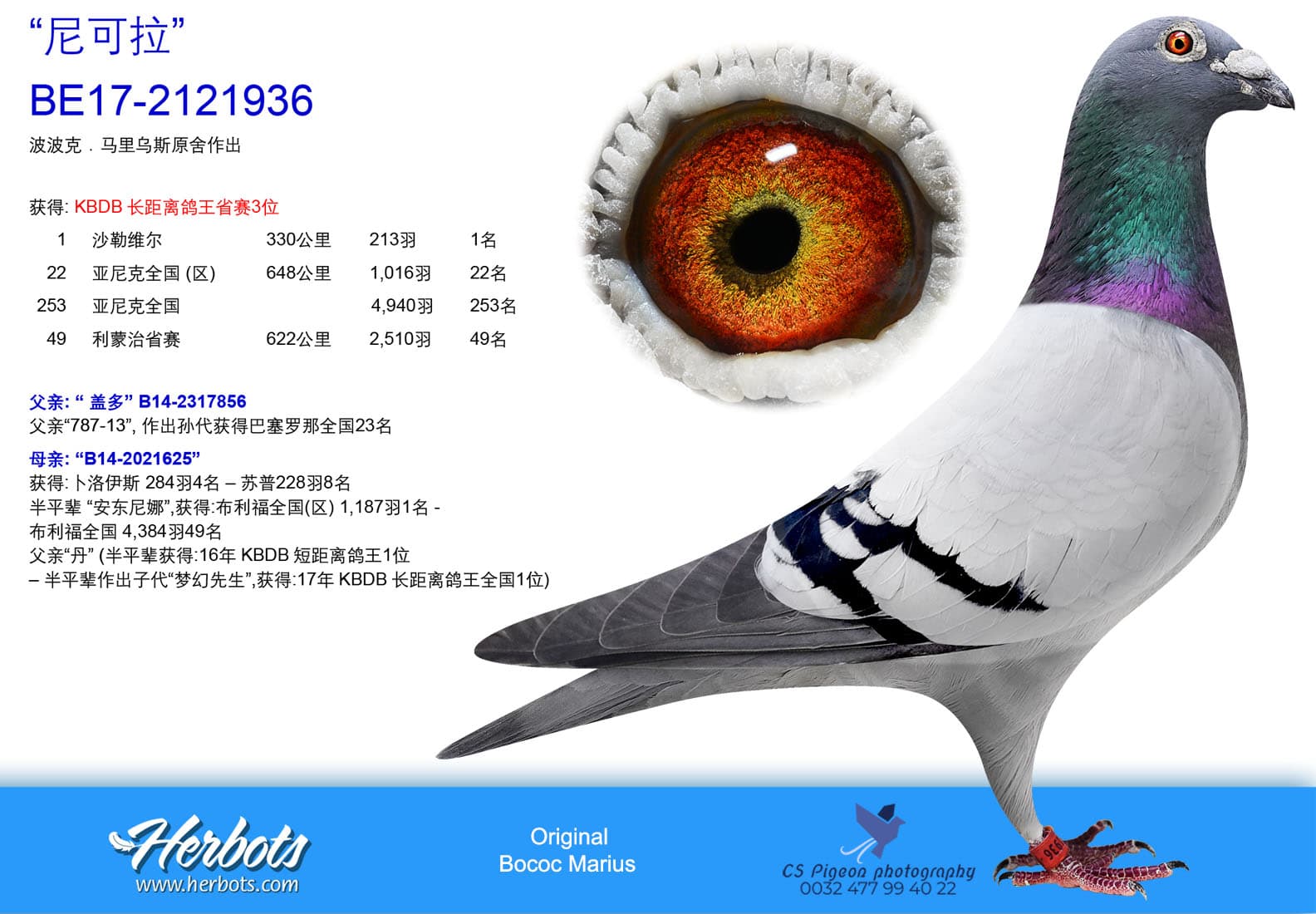 获得: KBDB长距离鸽王省赛3位1 沙勒维尔 330公里 213羽 1名22 亚尼克全国 (区) 648公里 1,016羽 22名 253 亚尼克全国 4,940羽 253名49 利蒙治省赛 622公里 2,510羽 49名