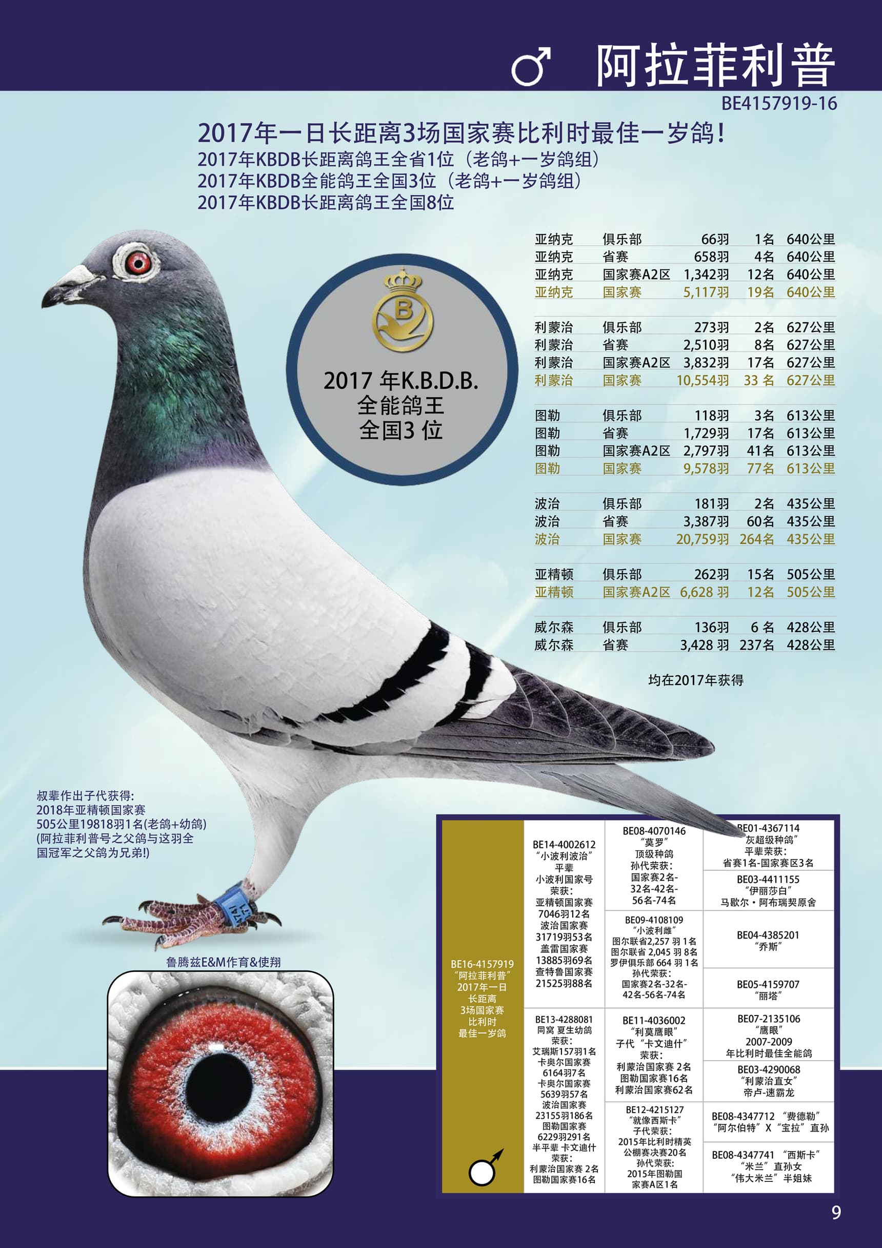 17年KBDB全能鸽王全国3位(成鸽+一岁鸽组)