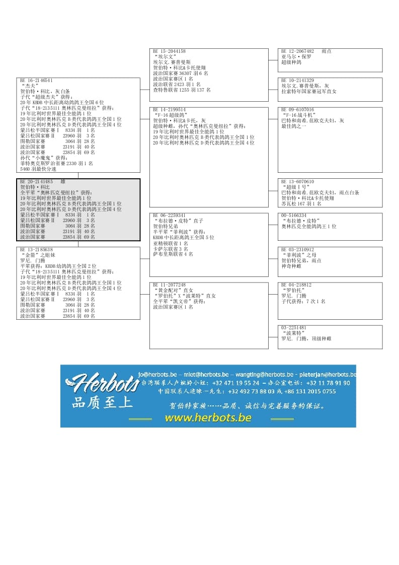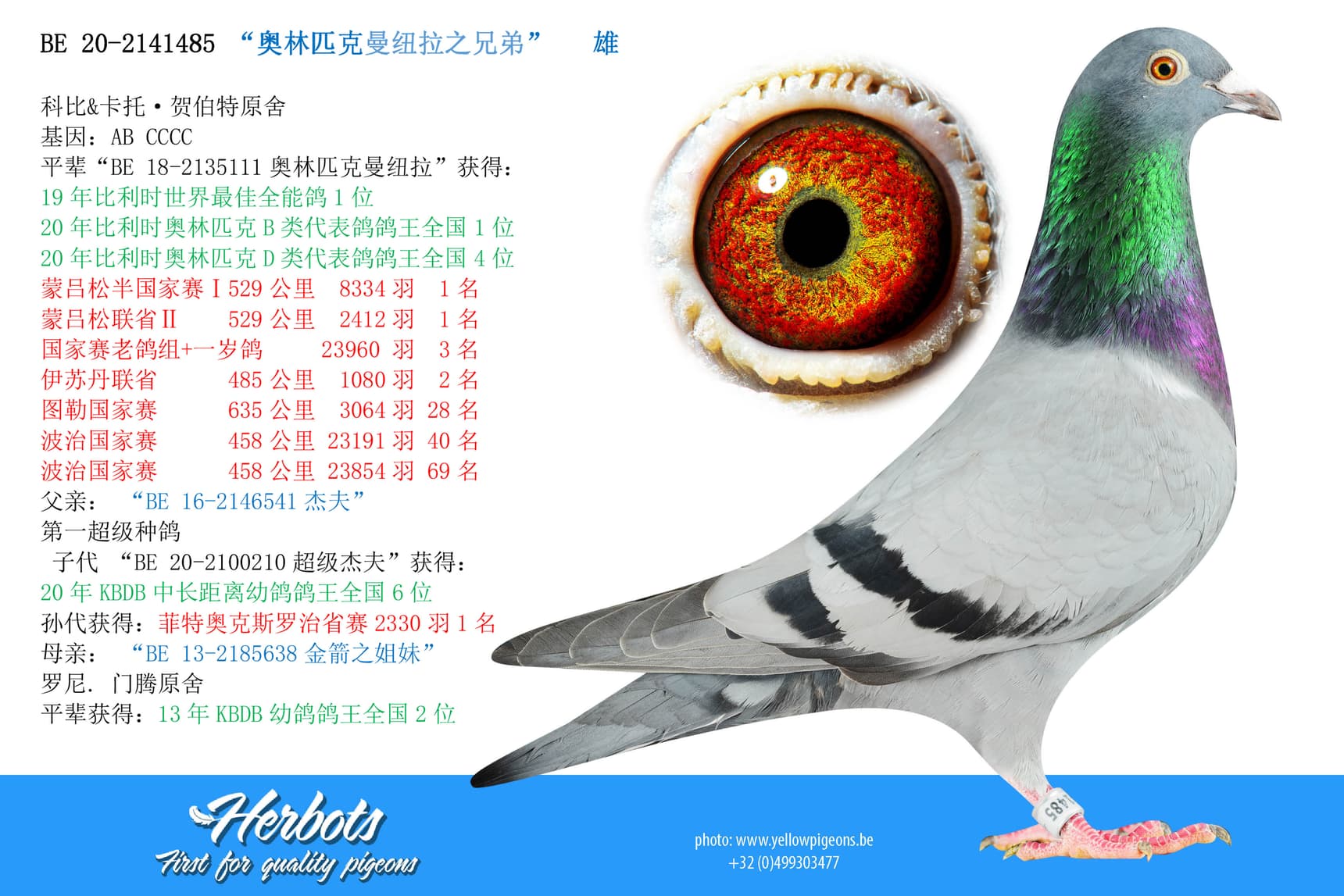 20年比利时奥林匹克D类代表鸽鸽王全国4位