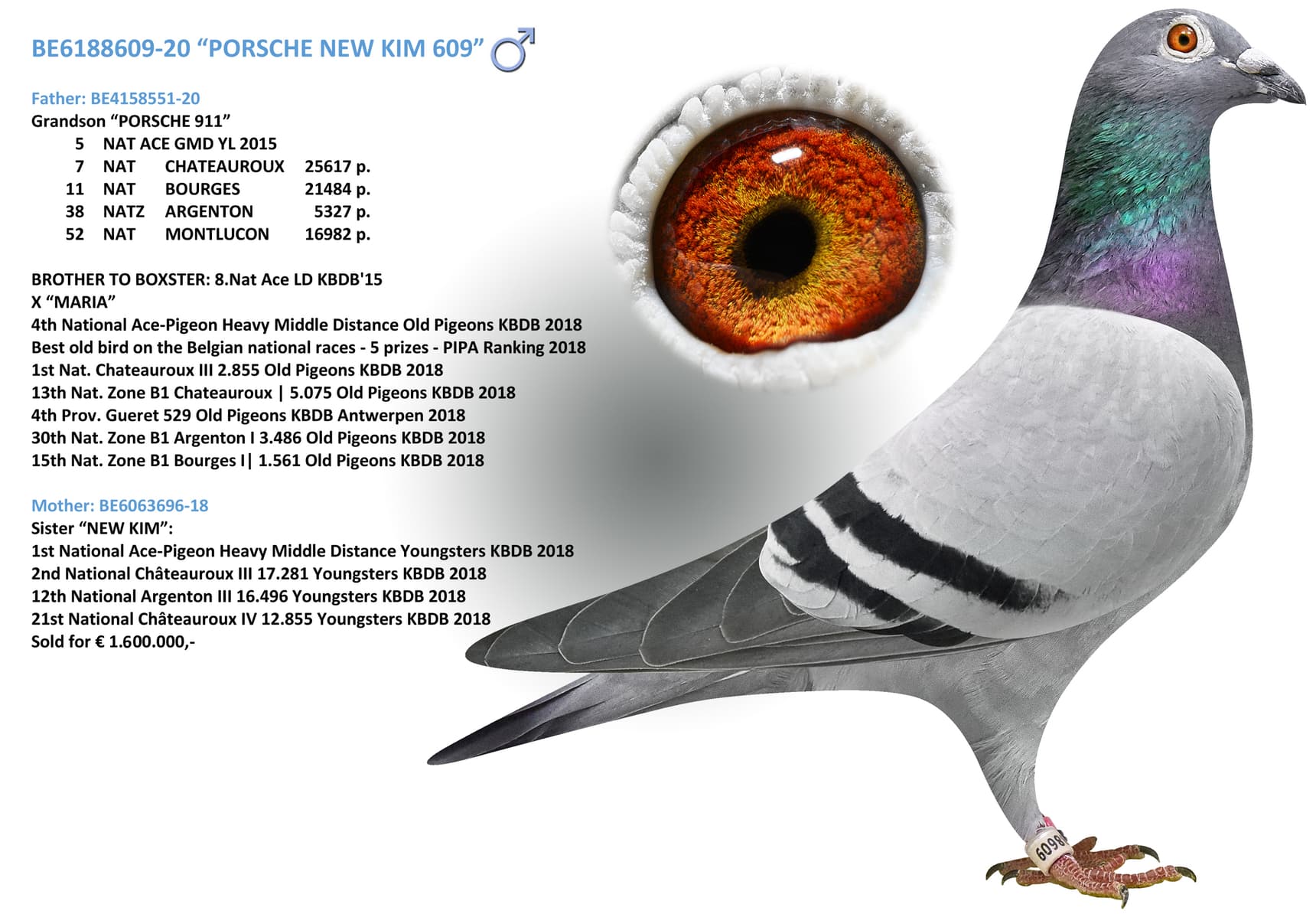 Best old bird on the Belgian national races - 5 prizes - PIPA Ranking 2018