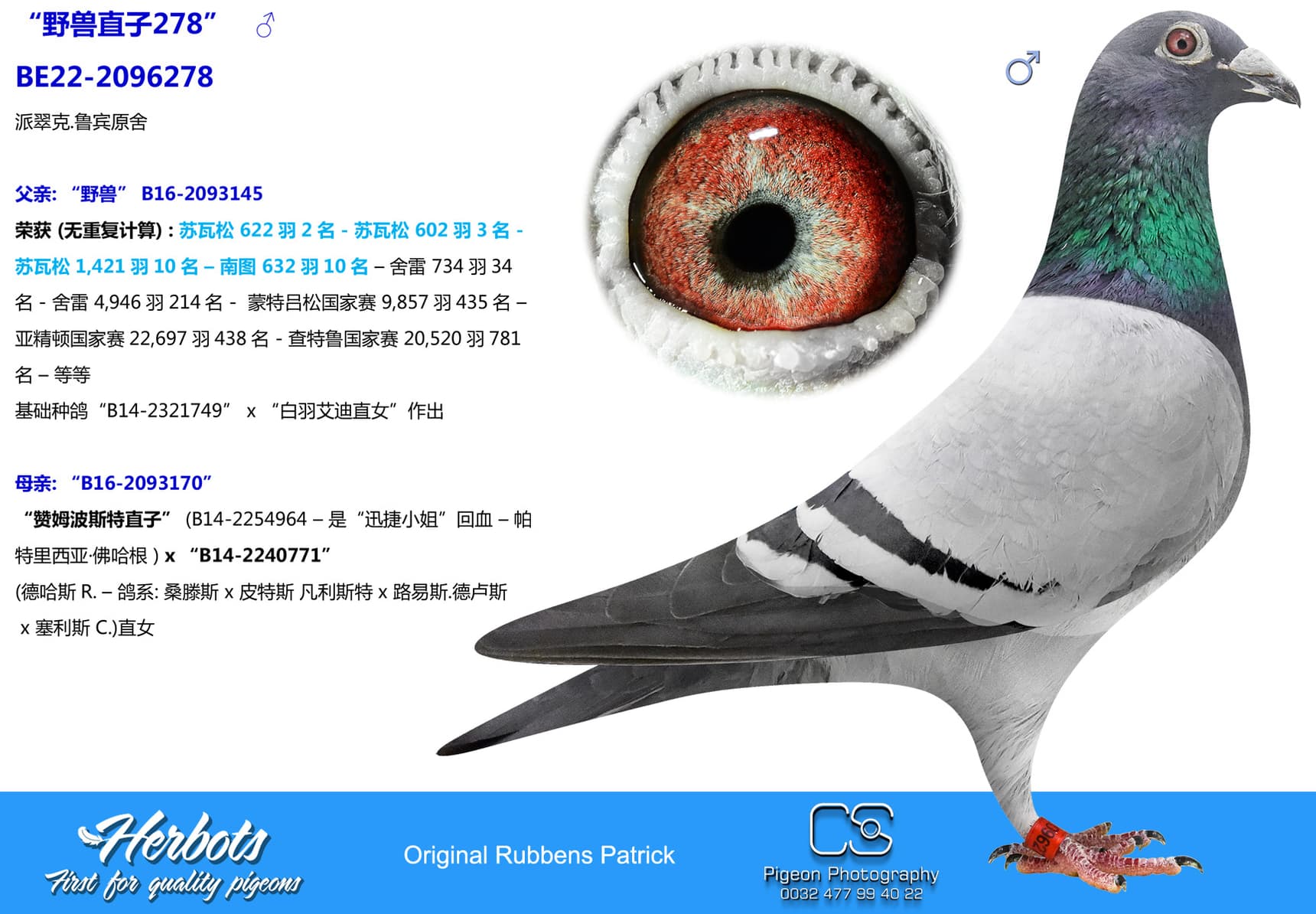 基础种鸽“B14-2321749” x “白羽艾迪直女”作出