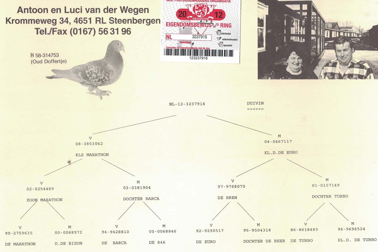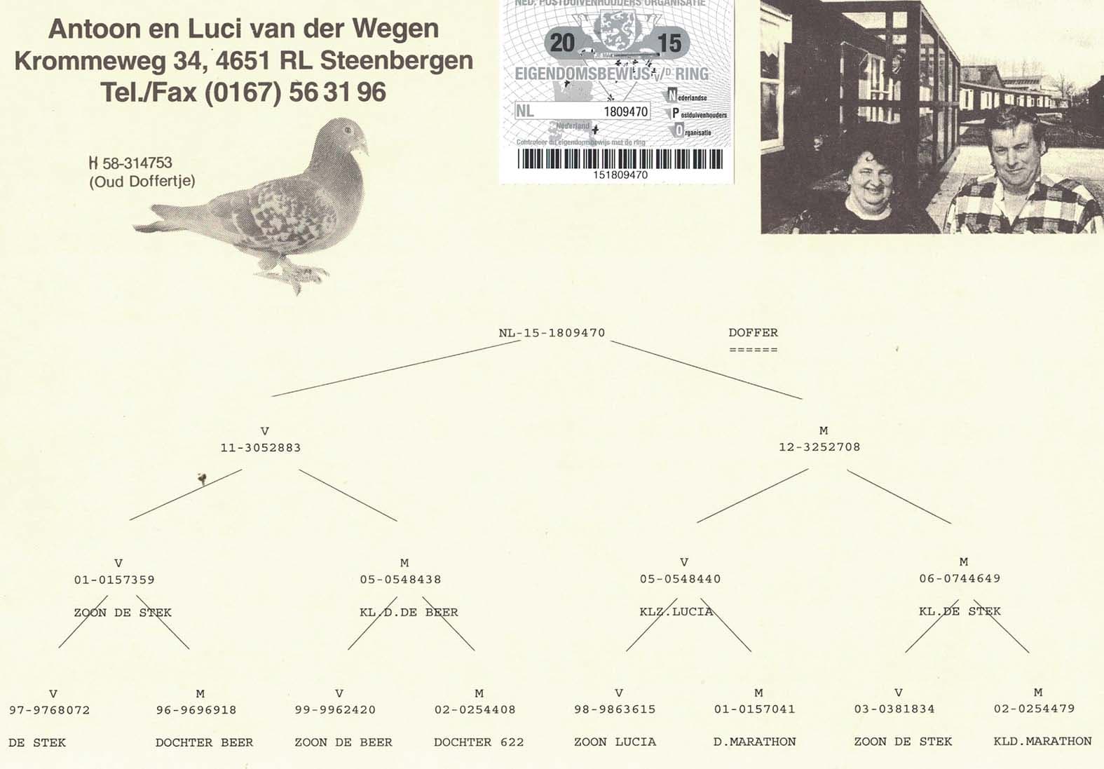 作育者:100% VAN DER WEGEN A. & L. 100% 纯范德维根血系