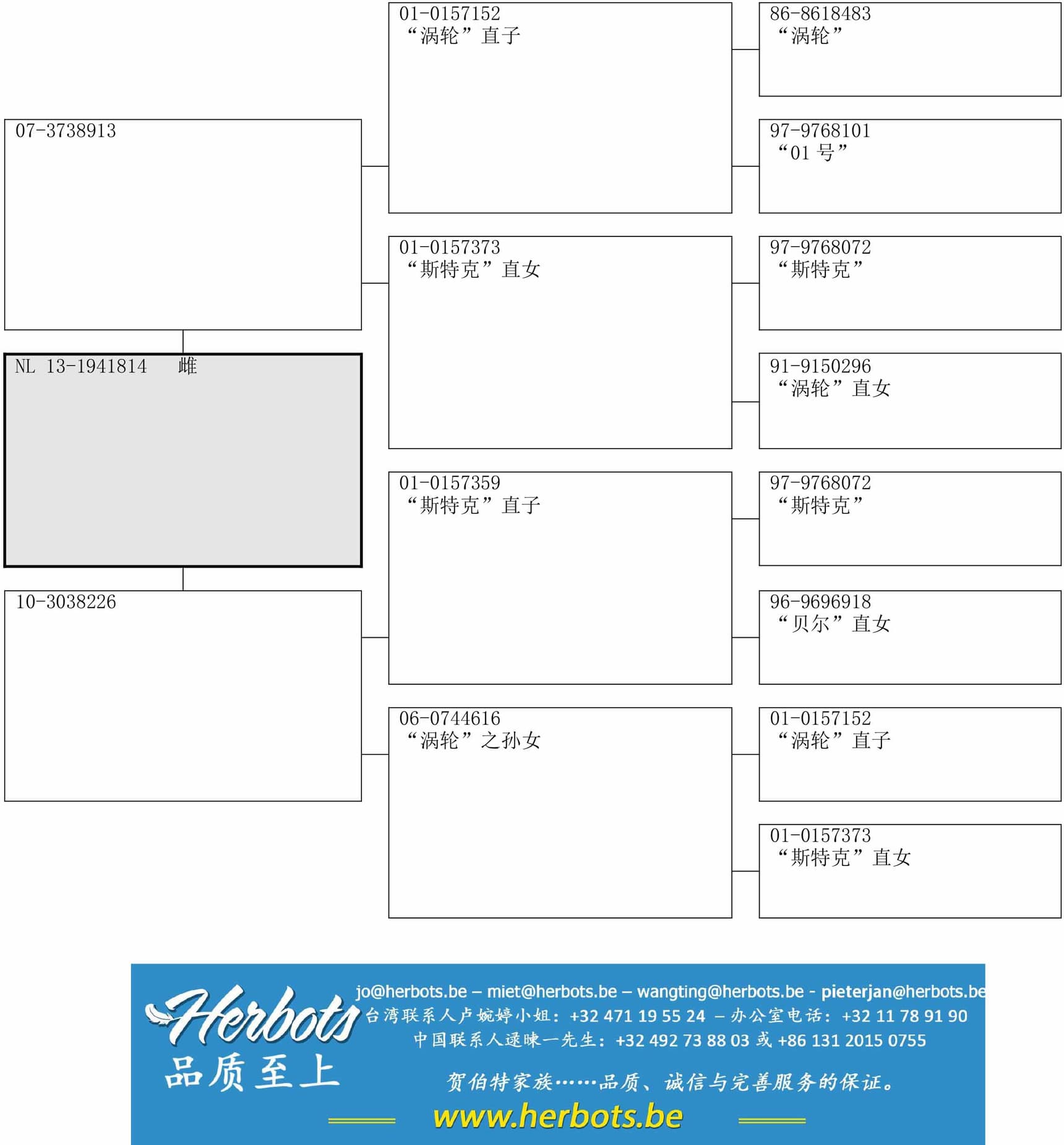 作育者:100% VAN DER WEGEN A. & L. 100% 纯范德维根血系