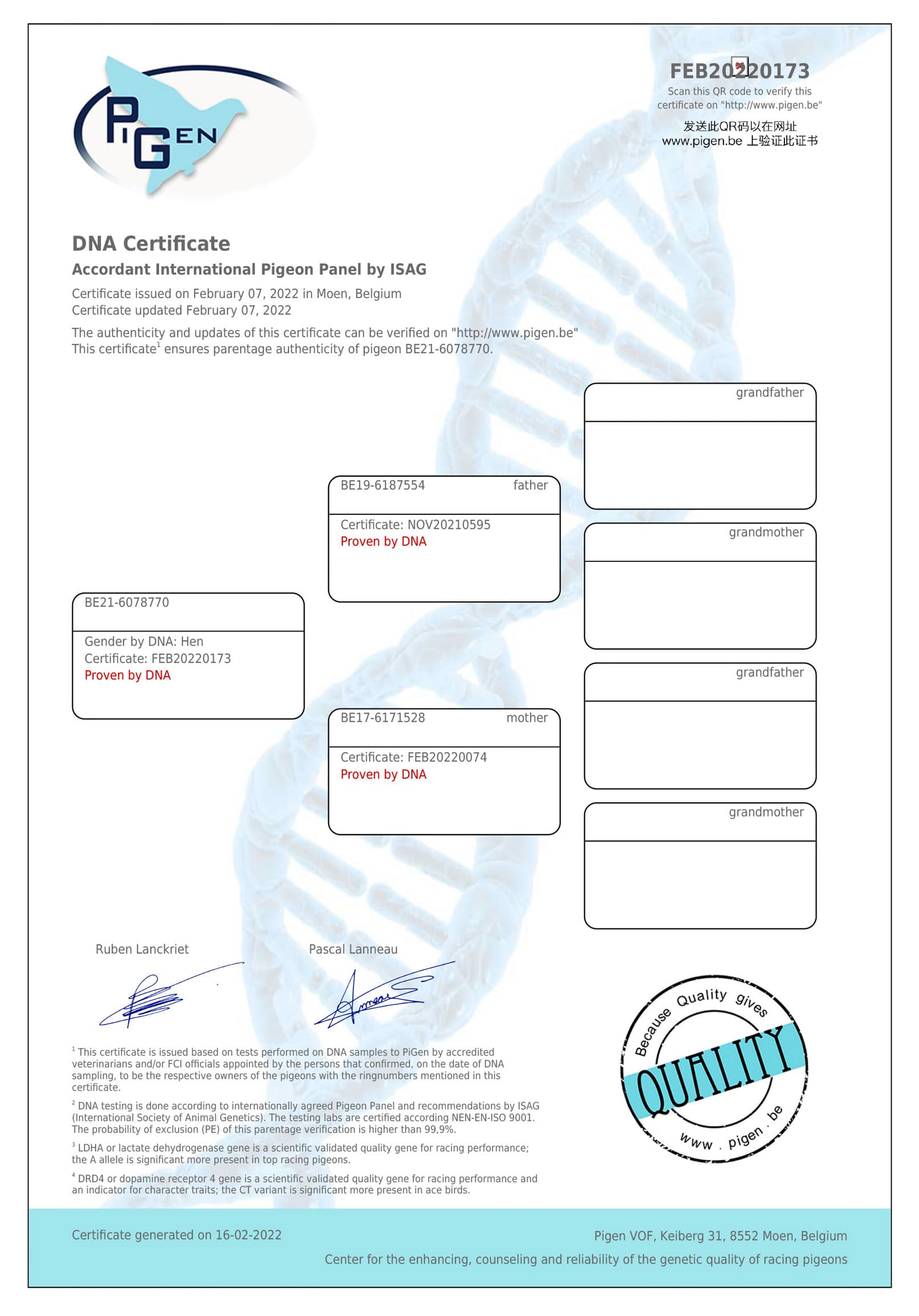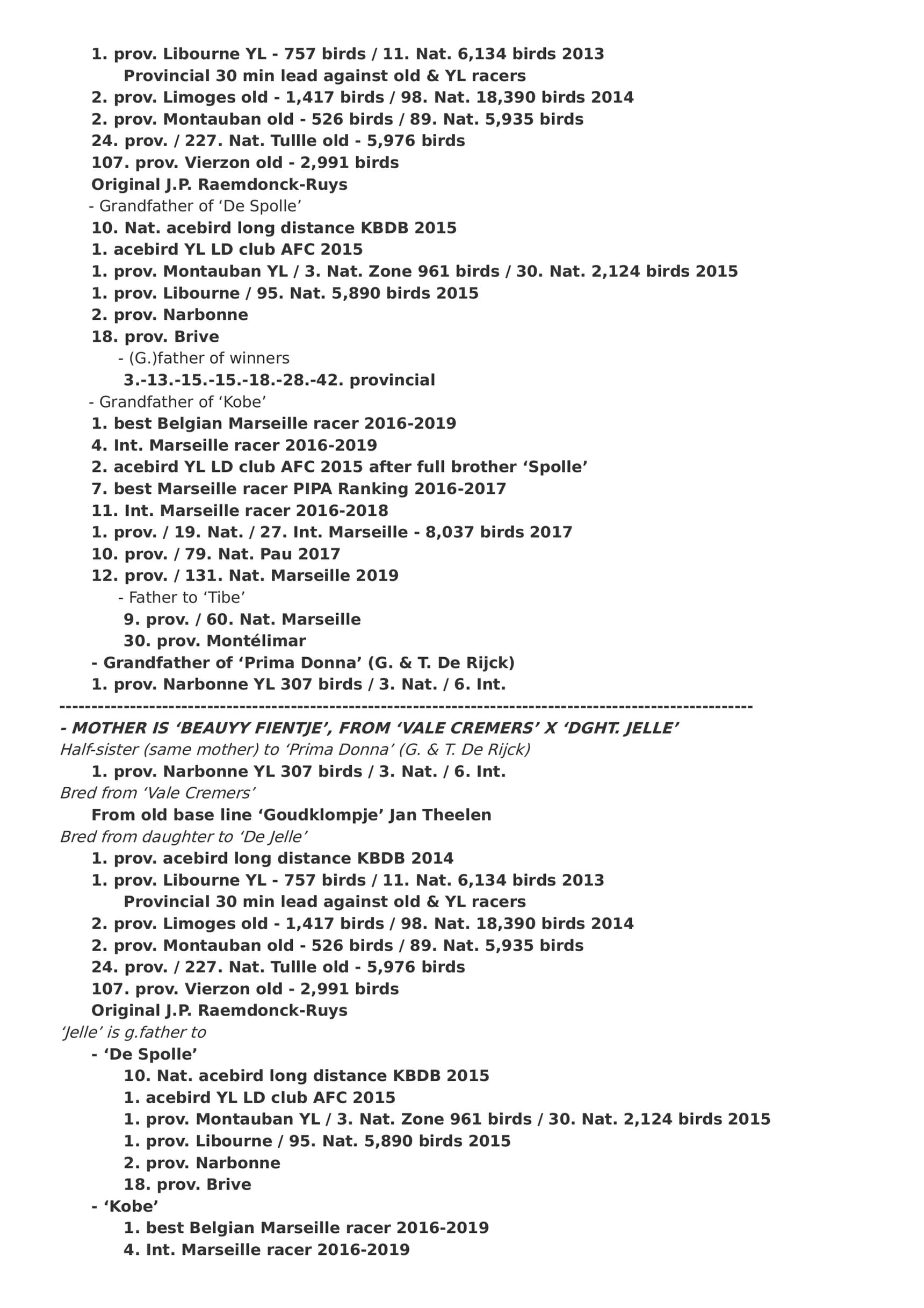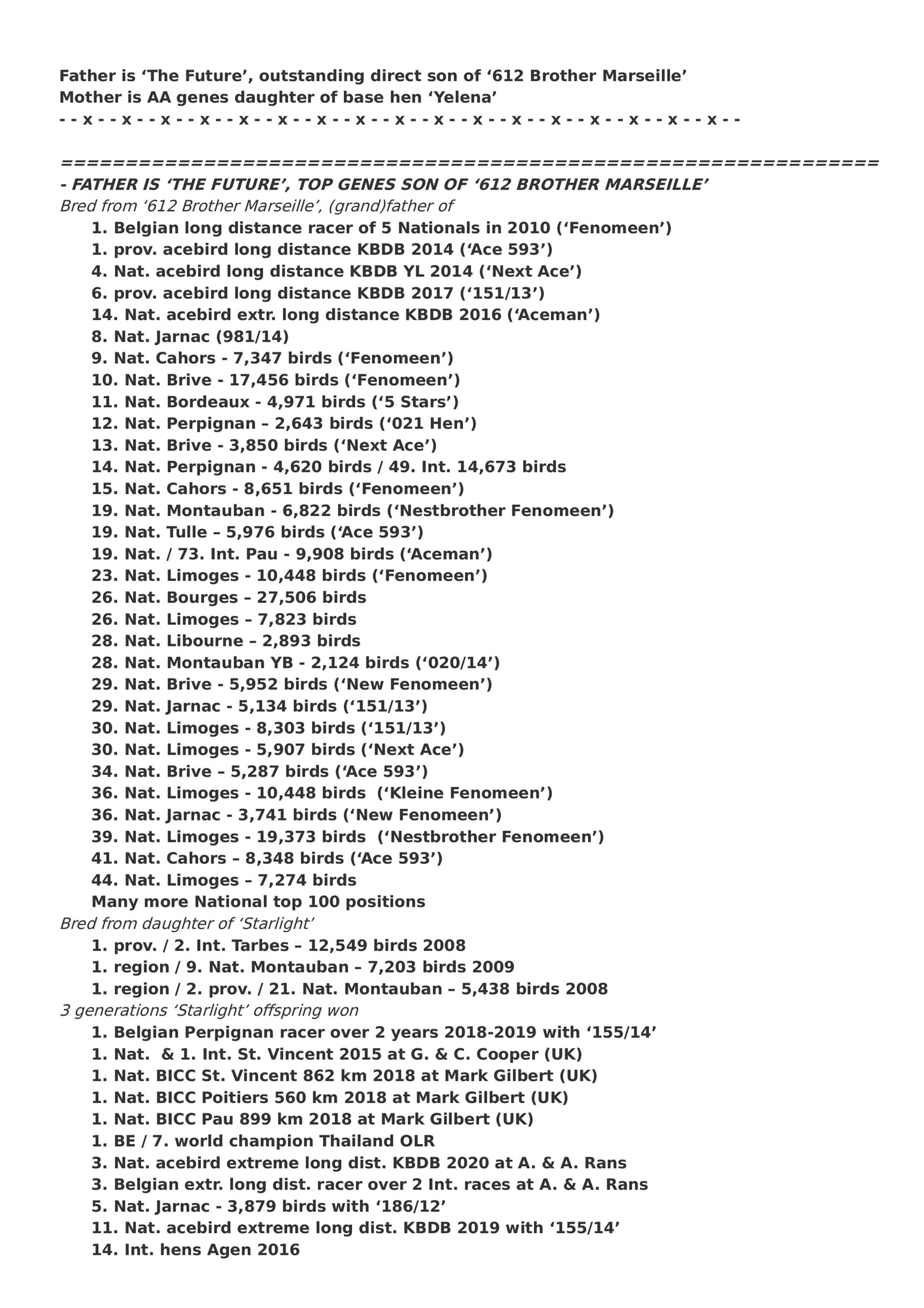 Geno type AB lactaat, Granddaughter "THE FUTURE", brother "MARSEILLE"