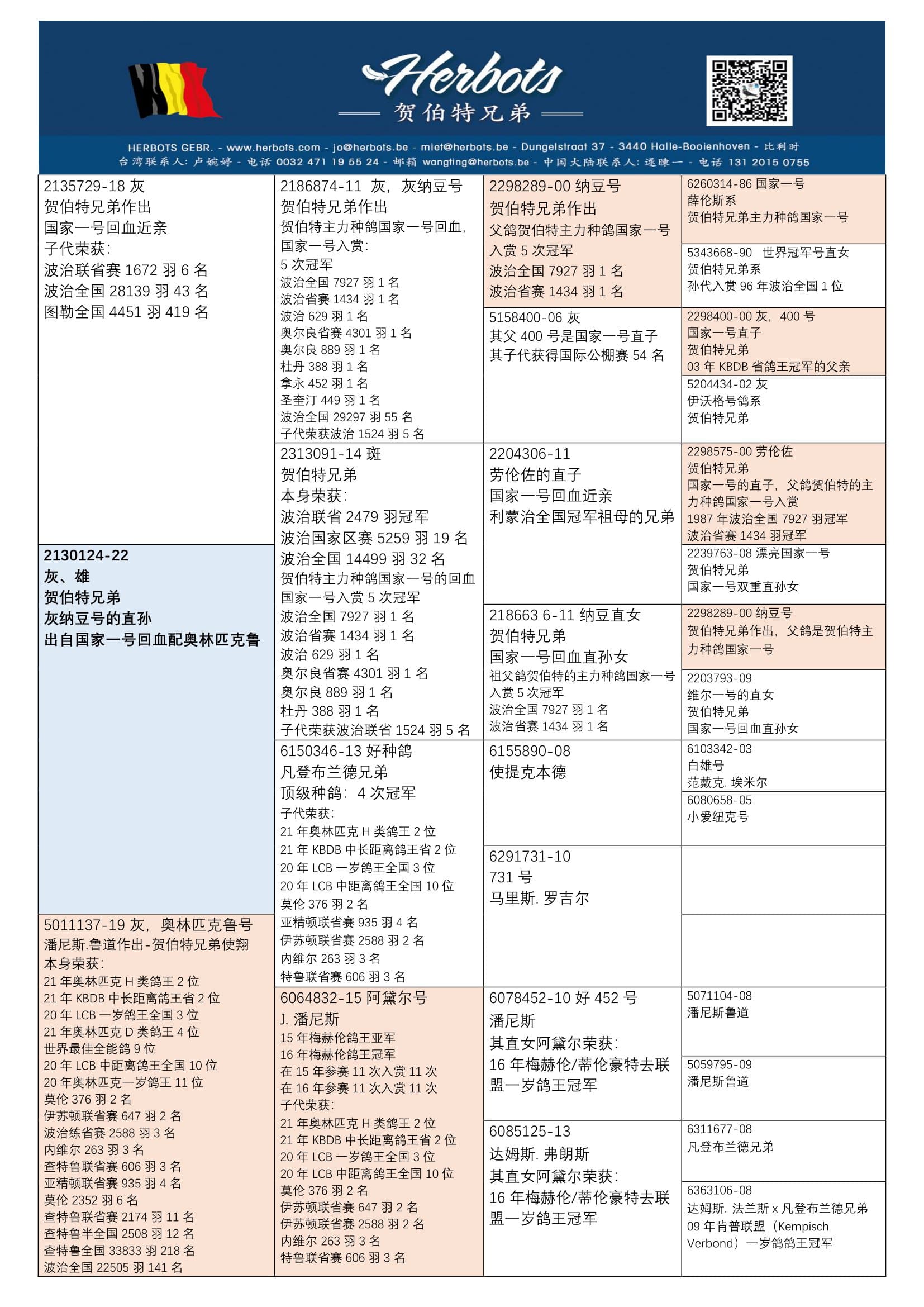 21年奥林匹克H类鸽王比利时2位