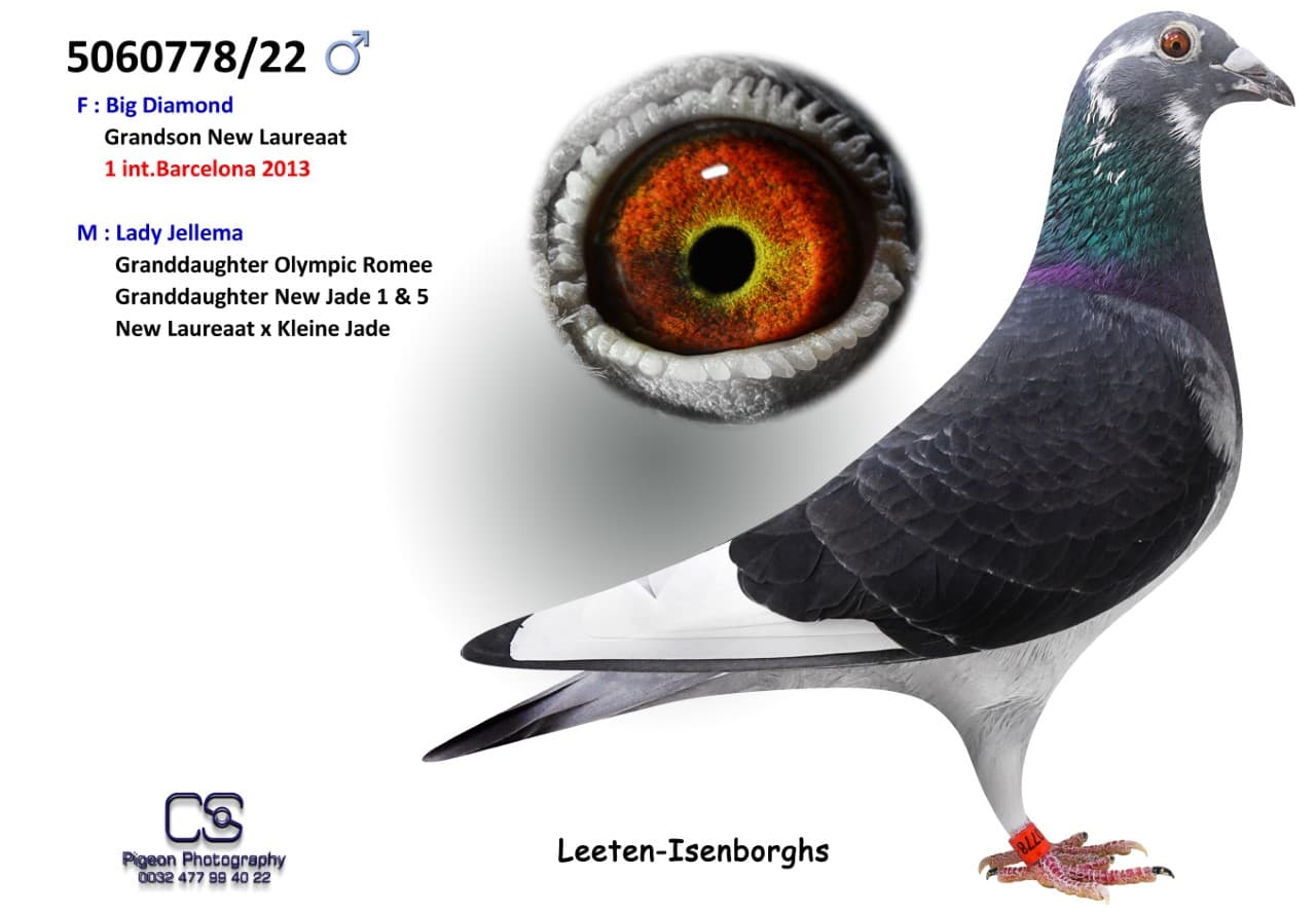 Father is "BIG DIAMOND": grandson "NEW LAUREAAT", Mother is "LADY JELLEMA": granddaughter "OLYMPIC ROMEE"
