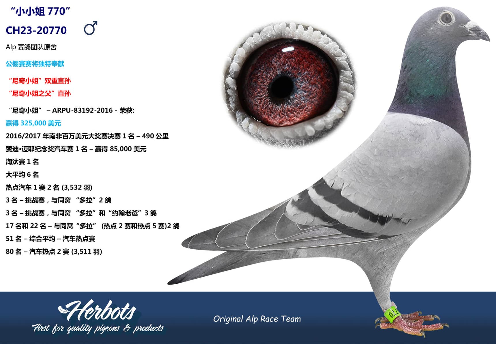 作育者:ALP RACE TEAM/SIMON WOLF 阿尔卑赛鸽队