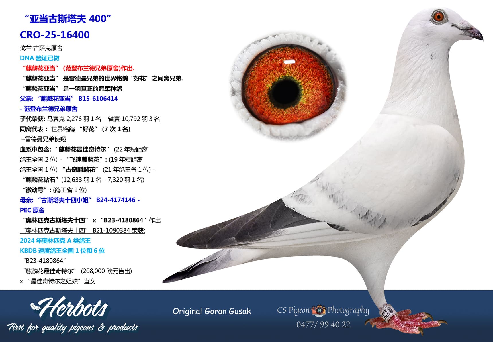 “麒麟花亚当” 是一羽真正的冠军种鸽