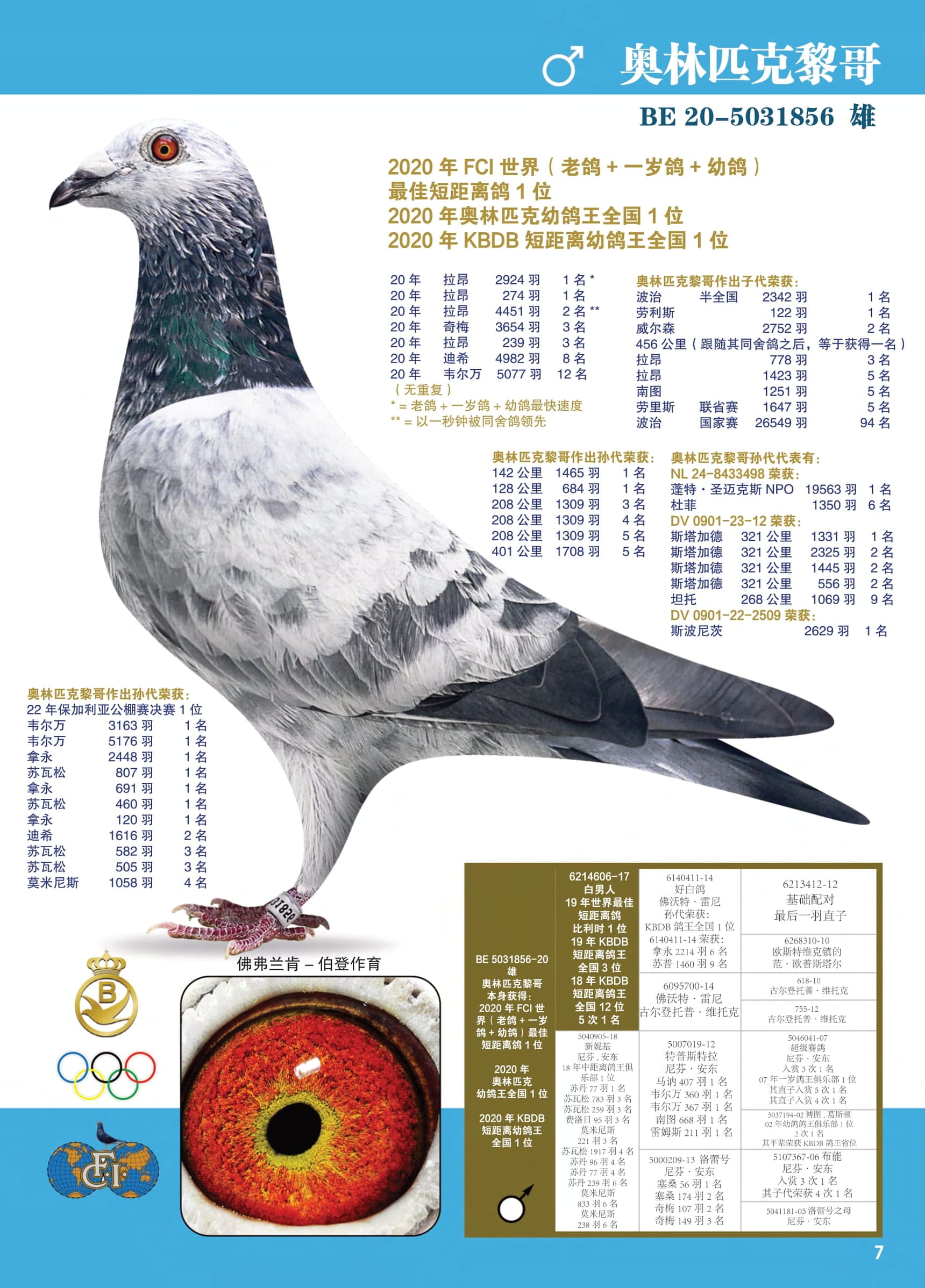 1st Nat. Olympic Ace pigeon Y.B. Cat. F 2020
