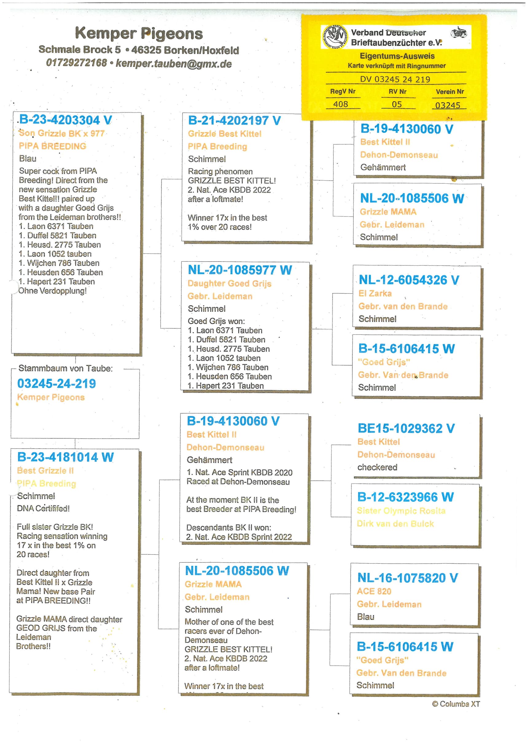 “最佳奇特尔 II”: KBDB短距离鸽王全国1位
