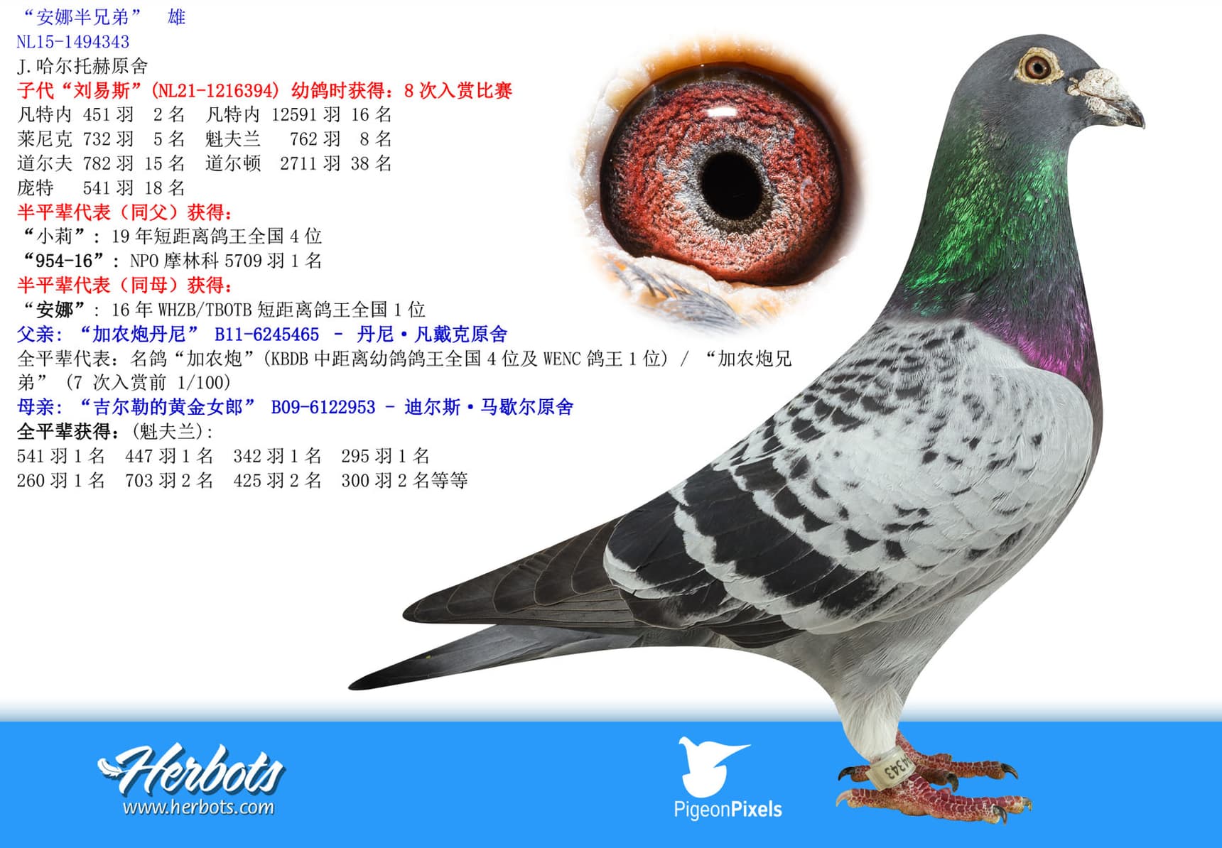 子代“刘易斯”(NL21-1216394) 幼鸽时获得:8次入赏比赛
