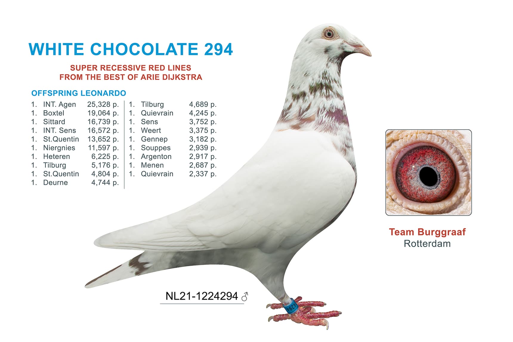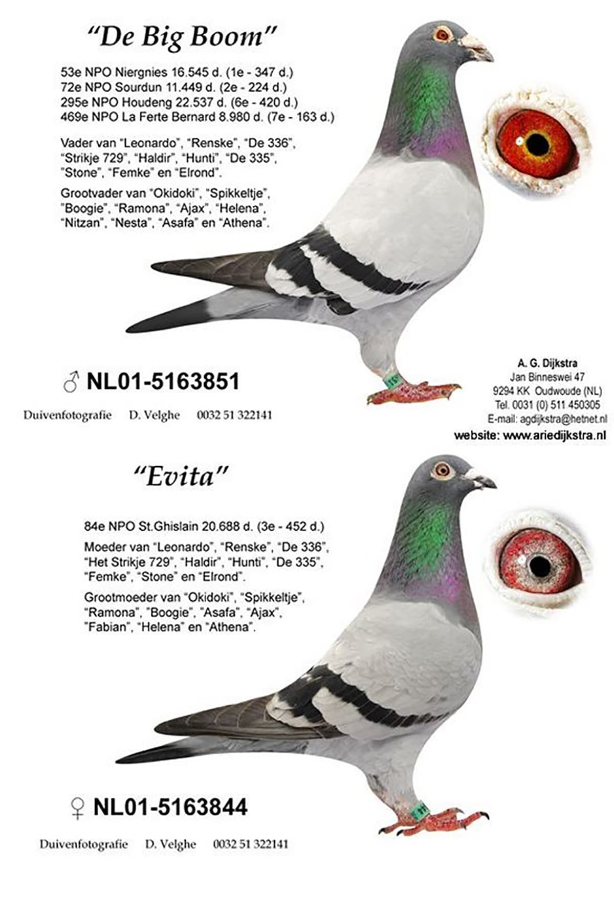 Super inbreeding to the super couple ‘’BIG BOOM’’ and ‘’EVITA’’ from Arie Dijkstra. Kids from this pair: LEONARDO, HUNTI, HET STRIKJE 792, RENSKE, NIENKE, DE 190, ELROND, APHRODITE, HALDIR, DE 336, FEMKE AND CASANDRA.