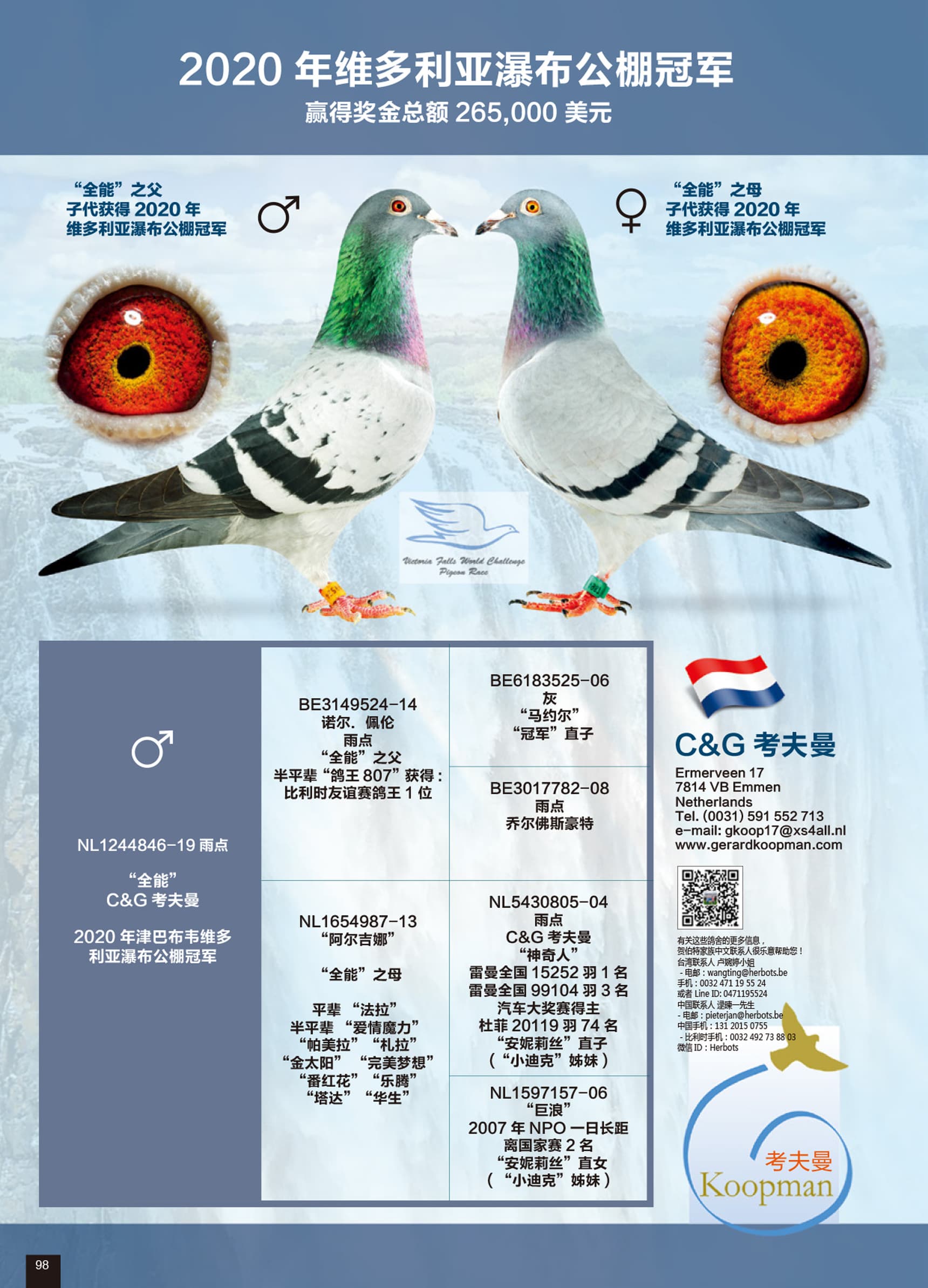 祖父“哲森”获得: 13年奥林匹克长距离鸽王