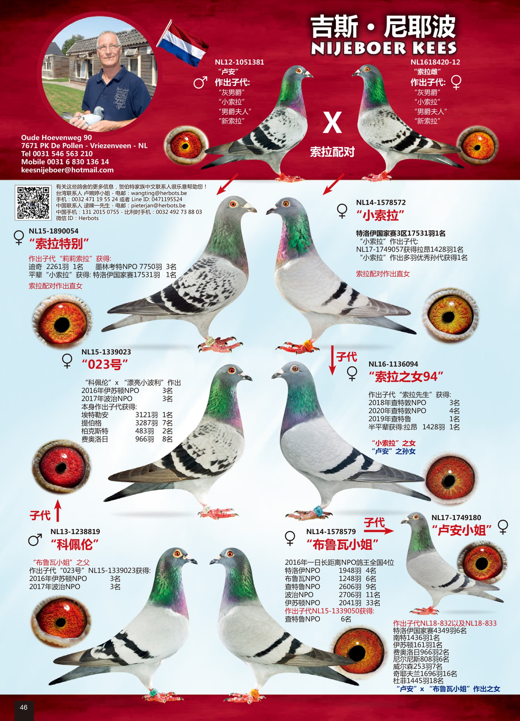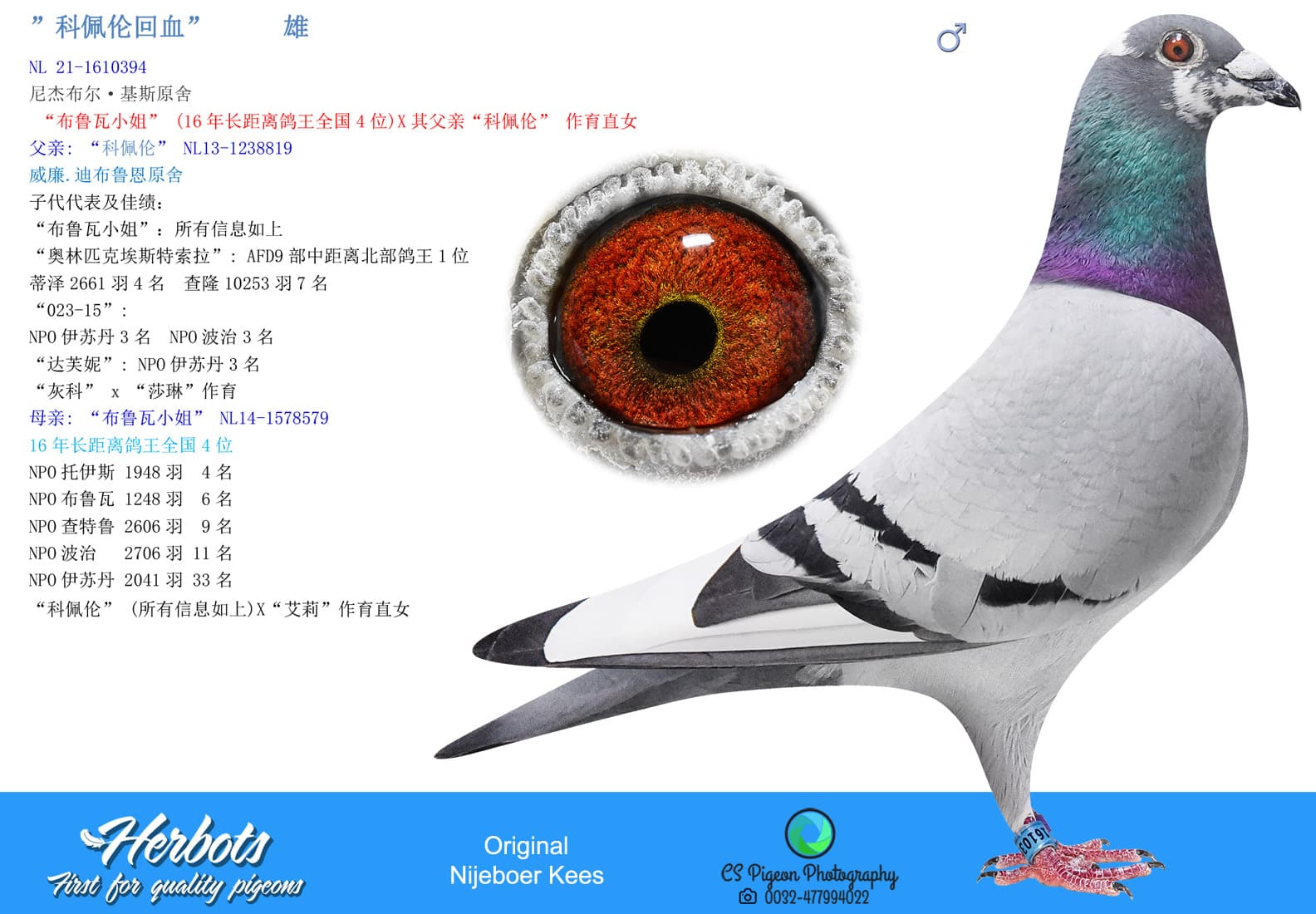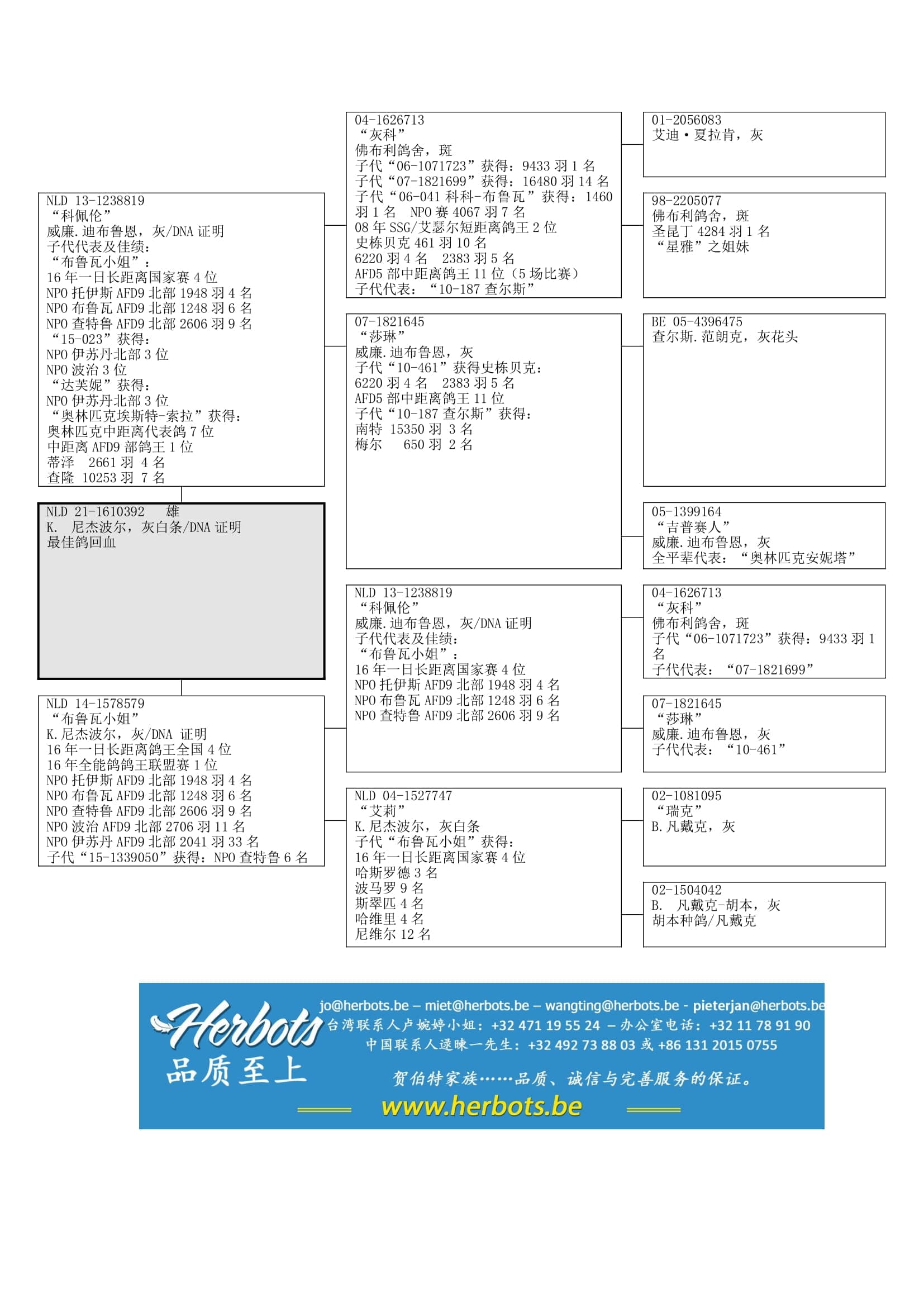 “布鲁瓦小姐” (16年长距离鸽王全国4位)X其父亲“科佩伦” 作育直女