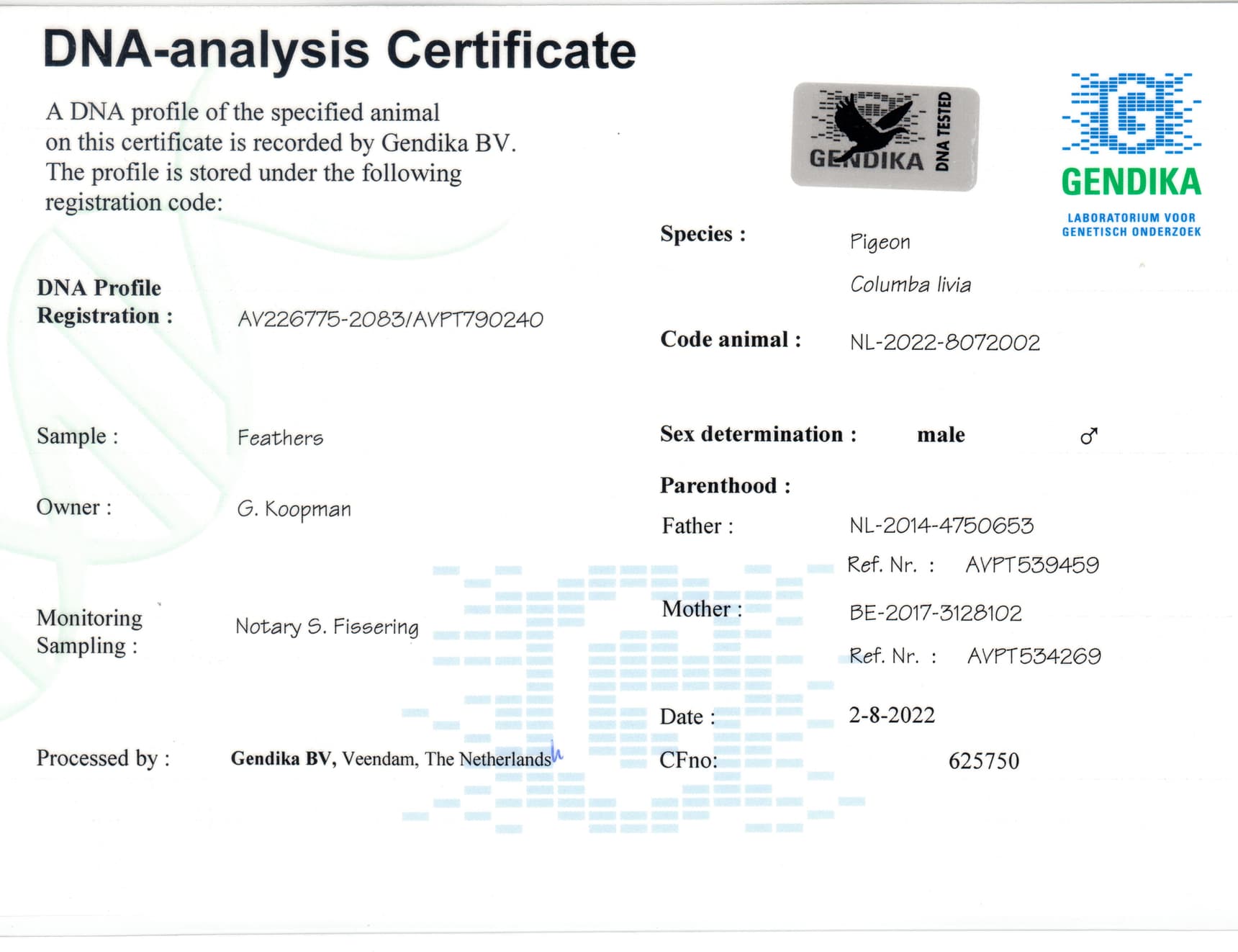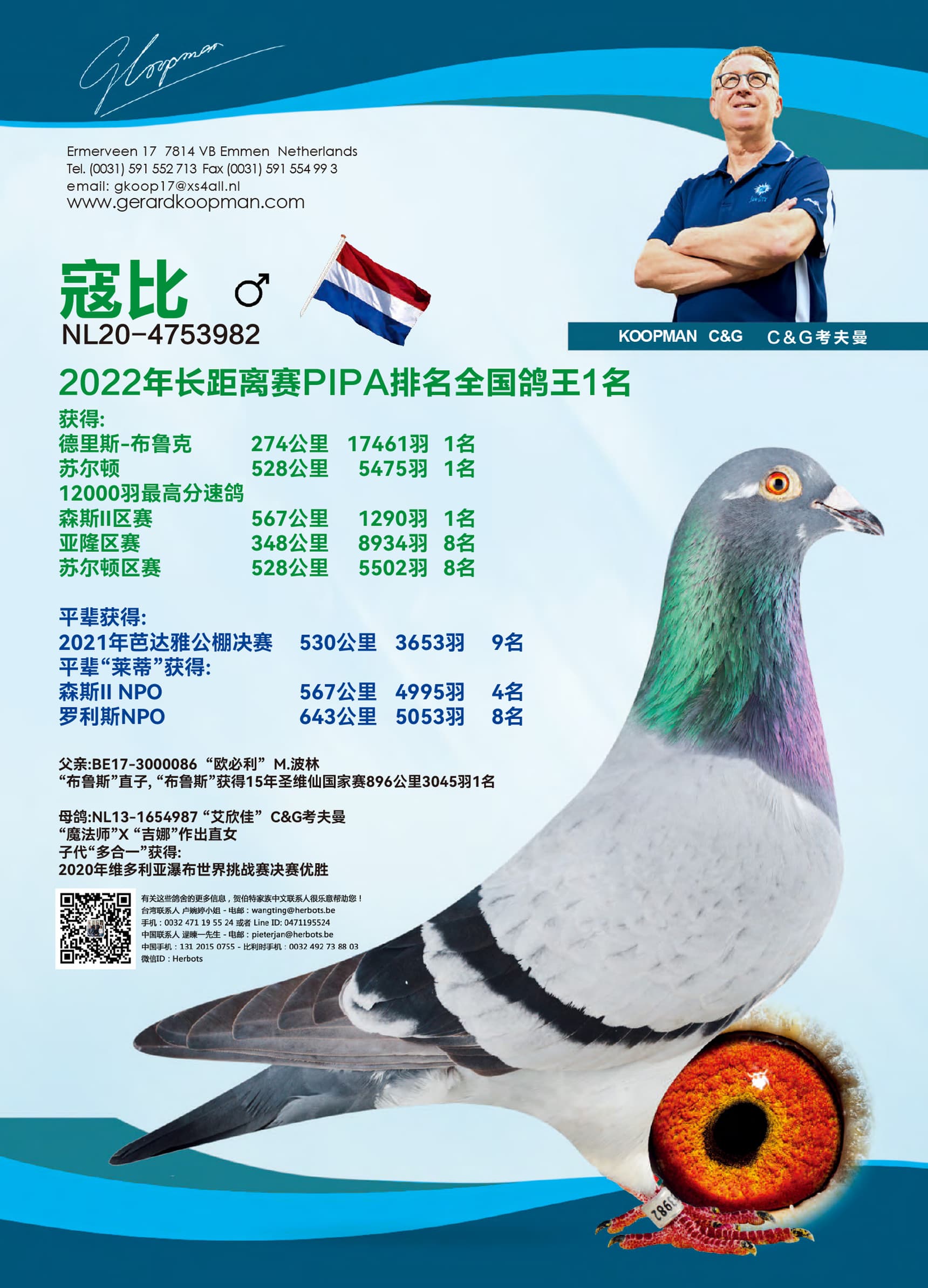 顶级鸽们“菲迪彼得斯”和“汉德瑞克斯”之半兄弟