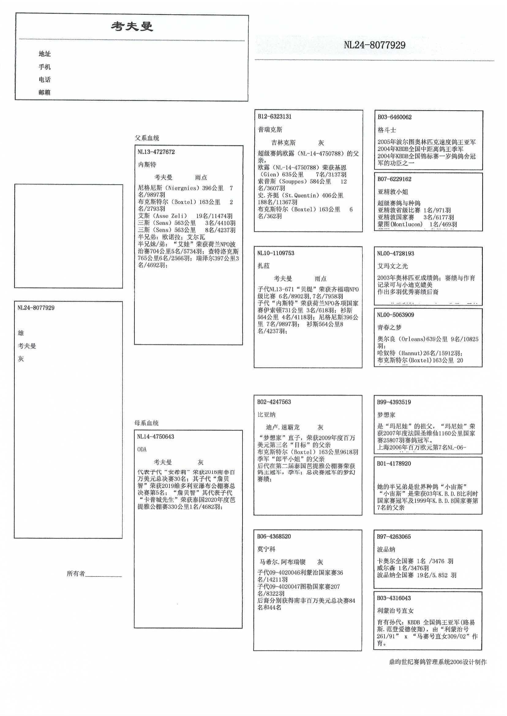 出自基础种鸽配对: